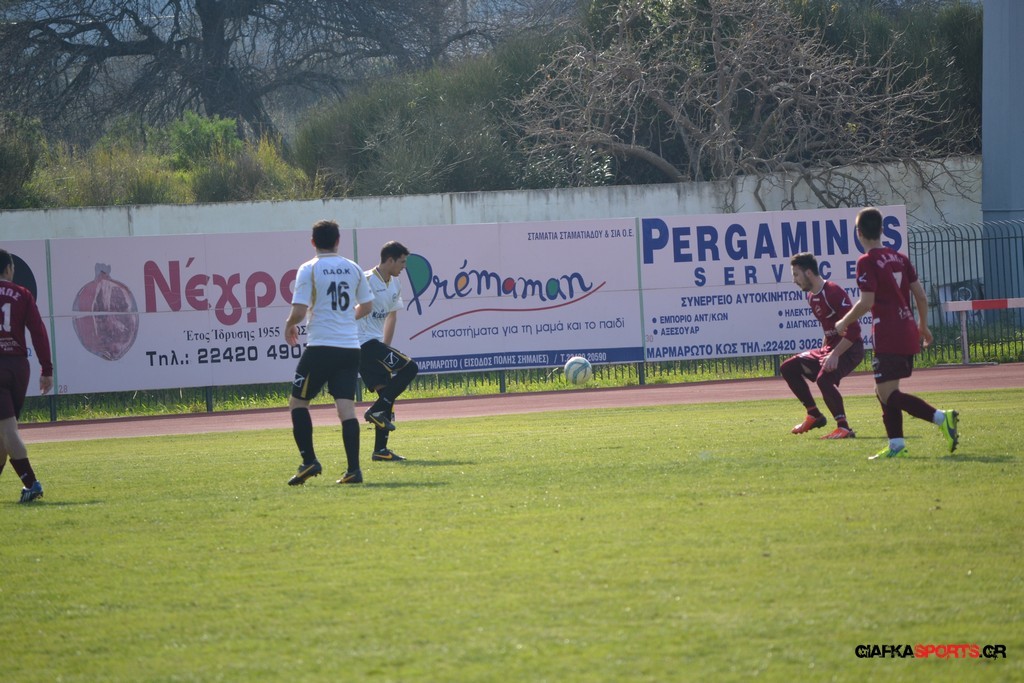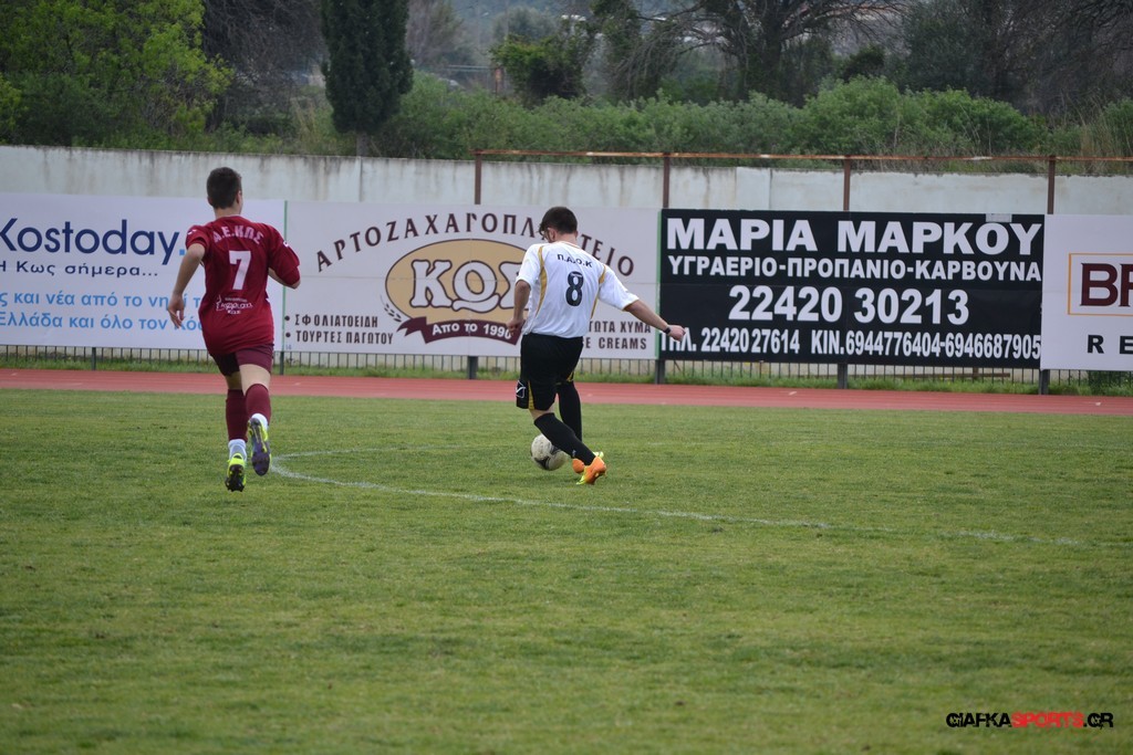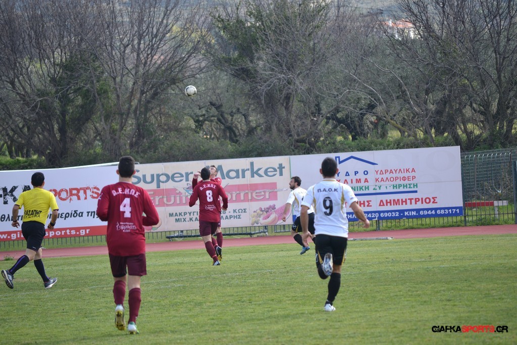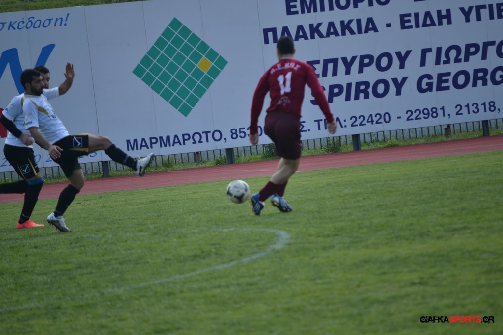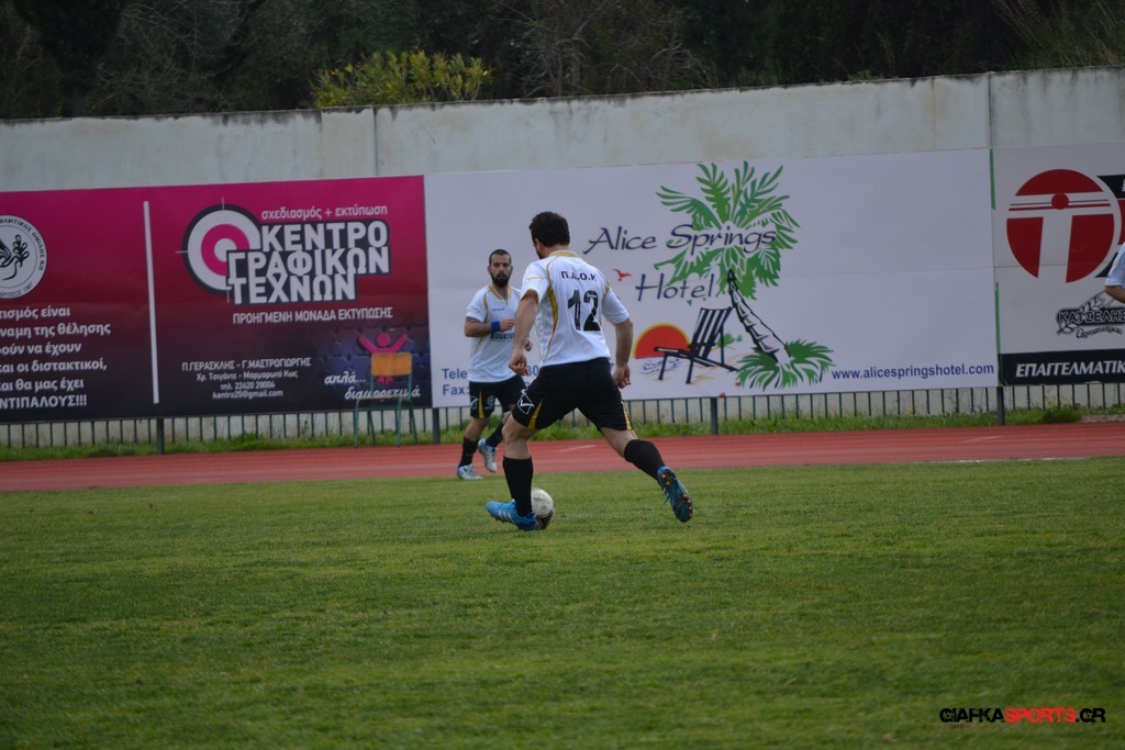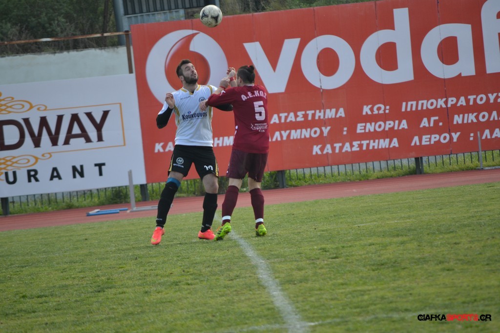 Ο ΠΑΟΚ Κω ήταν απ’ την αρχή του παιχνιδιού ο κυρίαρχος, και αφού προειδοποίησε με Σουλάι και Χατζηλάου, κατάφερε μόλις στο 14ο λεπτό να πάρει προβάδισμα στο σκορ όταν μετά από παράλληλη σέντρα του Χατζηλάου ο Ζαίμι, έστρωσε στον Μικέ Ξυπολιτά και εκείνος δεν δυσκολεύτηκε να ανοίξει το σκορ για το 1-0.