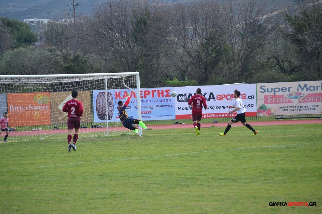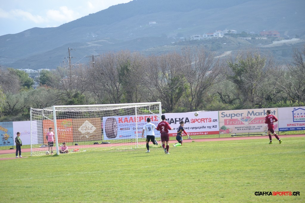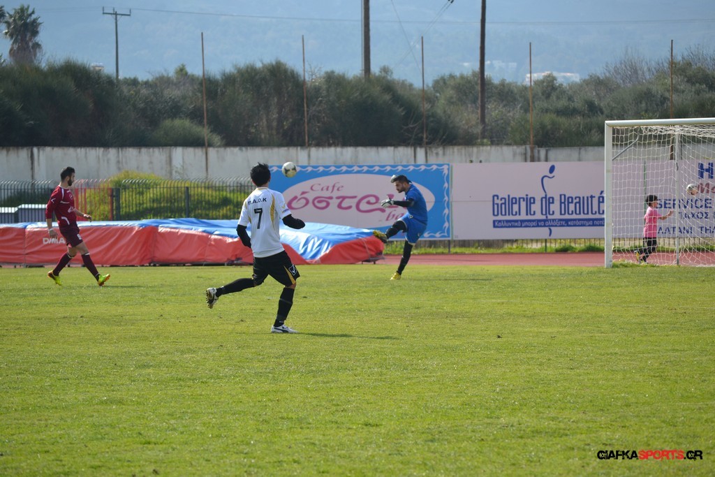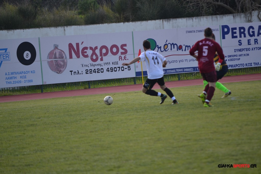 Δύο λεπτά αργότερα μάλιστα οι γηπεδούχοι κατάφεραν να πετύχουν και δεύτερο τέρμα, με τον Σουλάι απ’ τα όρια της περιοχής να σημαδεύει την αριστερή του Μερτζάνη δίνοντας αέρα δύο τερμάτων στην ομάδα του Λεωνίδα Κούτσικα που ήταν και το αποτέλεσμα του πρώτου μέρους αφού μετά το 30’ η Α.Ε Κως κατάφερε να ανεβάσει την απόδοση της και να ισορροπήσει το ματς.