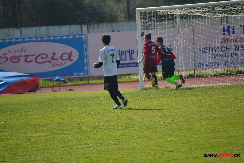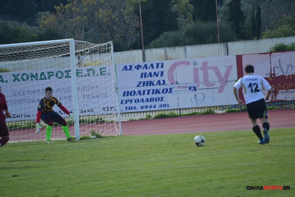 14′ ΓΚΟΛ!! Ωραία παράλληλη συρτή σέντρα του Χατζηλάου απ’ τα δεξιά, ο Ζαίμι έστρωσε στον Ξυπολιτά Μ. ο οποίος από κοντά δεν δυσκολεύτηκε να κάνει το 1-0 για τον ΠΑΟΚ Κω.