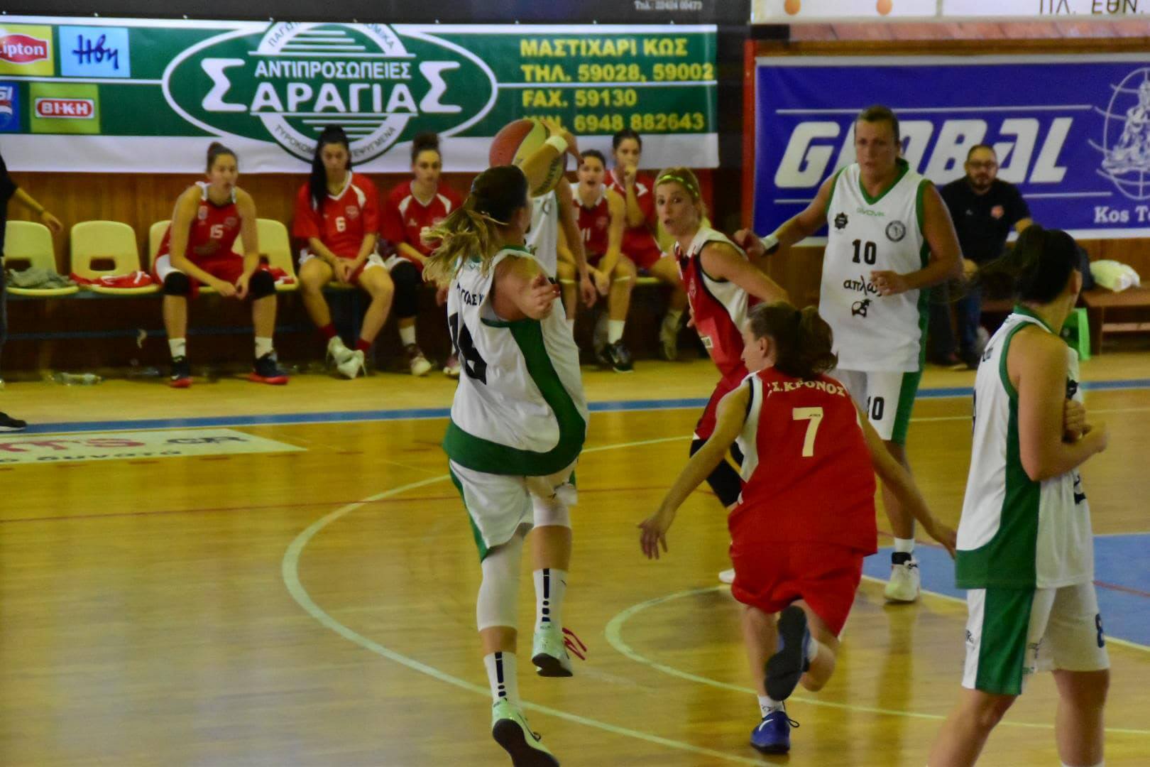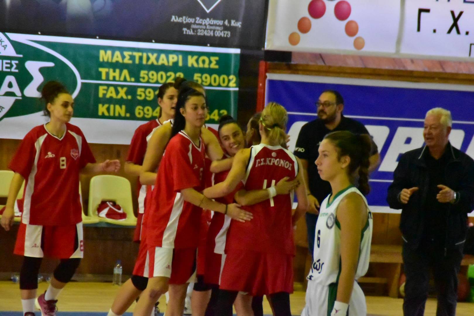 Στη συνέχεια η Βελούδου με γκολ-φάουλ διαμόρφωσε το 34-29 (21’), αλλά ο Κρόνος πλησίασε με τη Σιγάλα σε 39-38 και ισοφάρισε 41-41 με το ξεκίνημα της τελευταίας περιόδου. Στη συνέχεια οι φιλοξενούμενες επέβαλαν το ρυθμό τους και «έτρεξαν» σερί 0-9, κάνοντας το σκορ 41-50 στο πιο κρίσιμο σημείο. Κάποια φάουλ που δεν δόθηκαν αλλά και οι καθοριστικοί πόντοι το Κρόνου στο τέλος έγειραν την πλάστιγγα προς το μέρος του. Η Βελούδου μείωσε σε 44-50 στο 35’, αλλά ο Κρόνος ξέφυγε με 44-54 (38’) και έφυγε νικητής από την Κω, σ’ ένα καθοριστικό παιχνίδι και για τις δύο ομάδες.