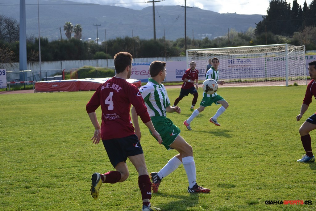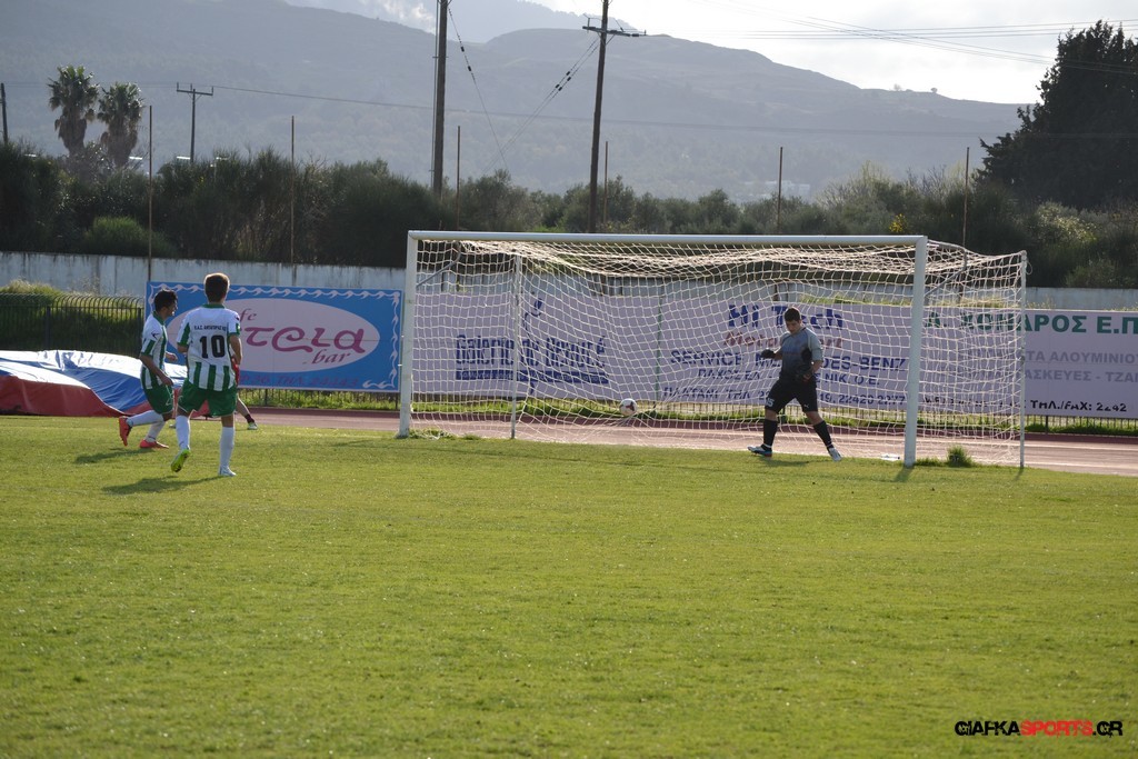 35′ ΓΚΟΛ!! Ο Μπέκα ακούμπησε την μπάλα με το χέρι μέσα στην περιοχή της Α.Ε Κω, με τον Δημαράκη να δείχνει το σημείο του πέναλτι. Την εκτέλεση ανέλαβε ο Καμπουράκης στέλνοντας την μπάλα στην δεξιά γωνία του Τσουκαλά για το 2-0.