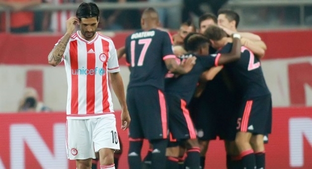 Η τακτική αυτή δούλεψε για τον Ολυμπιακό. Τουλάχιστον αμυντικά. Οι γερμανοί είχαν την κατοχή της μπάλας αλλά οι περιπτώσεις που έφτασαν κοντά στο γκολ ήταν λίγες. Η πίεση τους άρχισε να αυξάνεται σταδιακά με τον Ρομπέρτο και τον Ιντέγε να σώσουν τους ερυθρόλευκους στις δύο καλύτερες στιγμές που είχαν οι παίκτες του Πεπ Γκουαρντιόλα. Στο 26ο λεπτό ο Ιντέγε έδιωξε την μπάλα πριν περάσει την γραμμή της εστίας του Ολυμπιακού μετά από κεφαλιά του Λεβαντόφσκι. Στο 35ο λεπτό ο Πολωνός έκανε το σουτ μετά από σέντρα από τα αριστερά από τον Κόστα. Ο Ρομπέρτο έστω και με τα πόδια κατάφερε να διώξει.