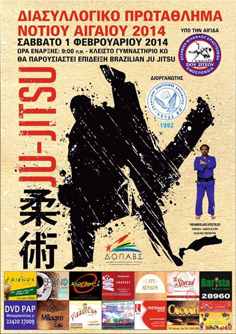 Η Ελληνική Φίλαθλος Ερασιτεχνική Ομοσπονδία Ζίου Ζίτσου και ο Α.Σ. “Αετός” σας προσκαλούν στο διασυλλογικό Πρωτάθλημα Ν. Αιγαίου Ju-Jitsu που θα γίνει το Σάββατο 1 Φεβρουαρίου και ώρα 09:00 στο Κλειστό Γυμναστήριο Κω.