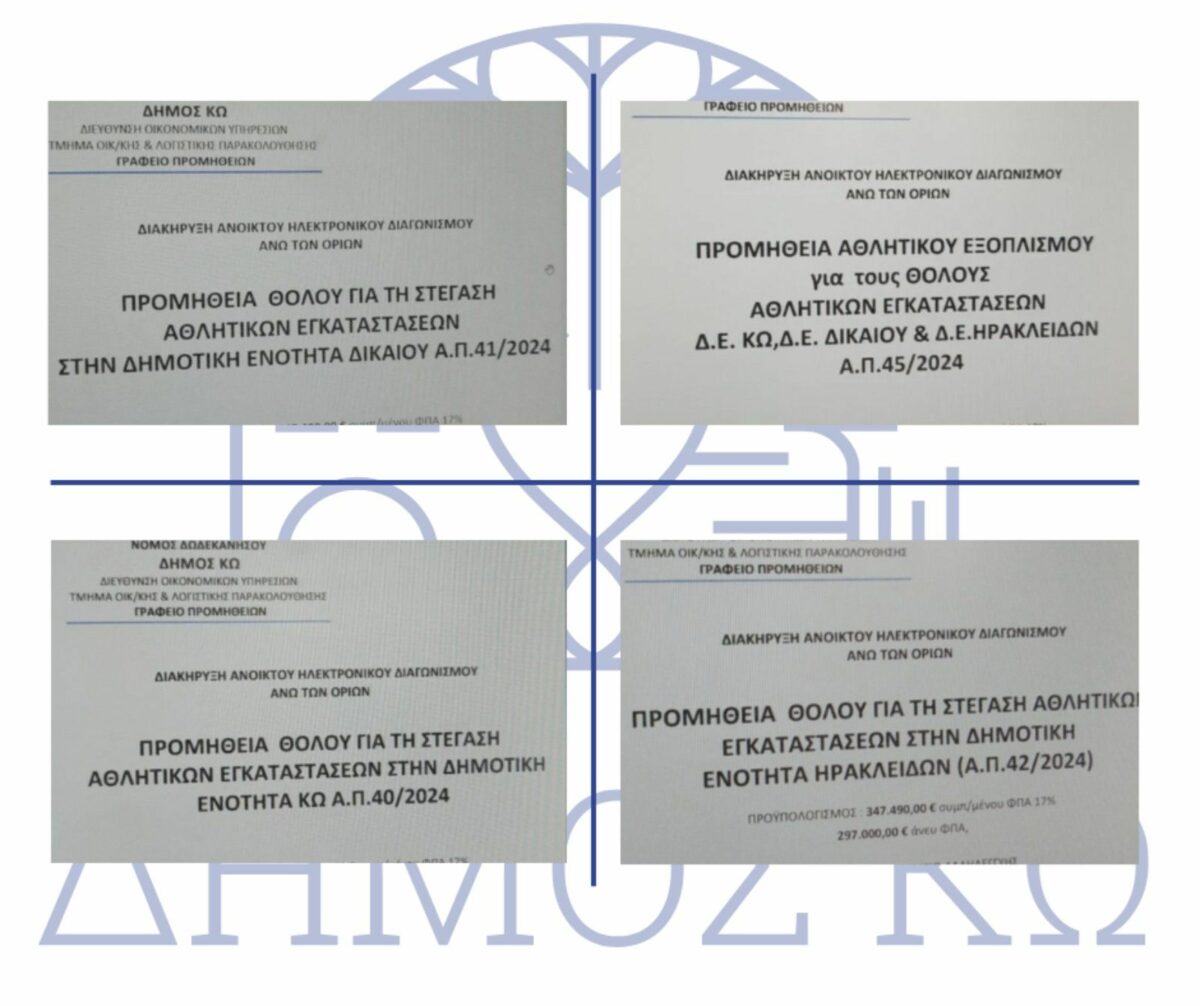 «Μετά την Καρδάμαινα, προχωρούμε με αποφασιστικότητα στην υλοποίηση ακόμη τριών κλειστών θόλων: στον Κέφαλο, στο Ζηπάρι και στην Πόλη της Κω. Η δημοπράτηση της προμήθειας τους, μαζί με τον απαραίτητο αθλητικό εξοπλισμό, συνολικού προϋπολογισμού 1,7 εκατομμυρίων ευρώ, είναι πλέον γεγονός.