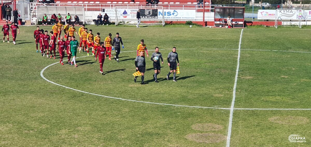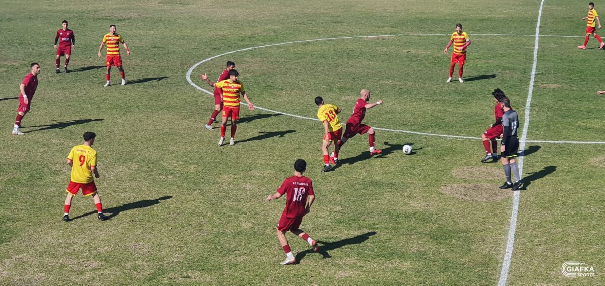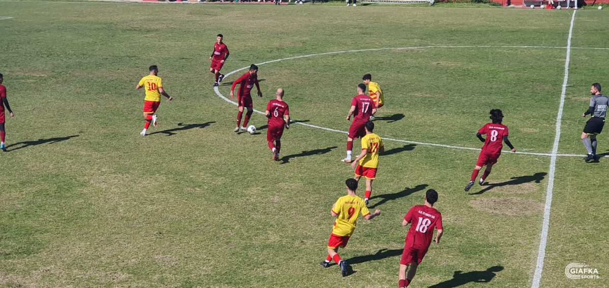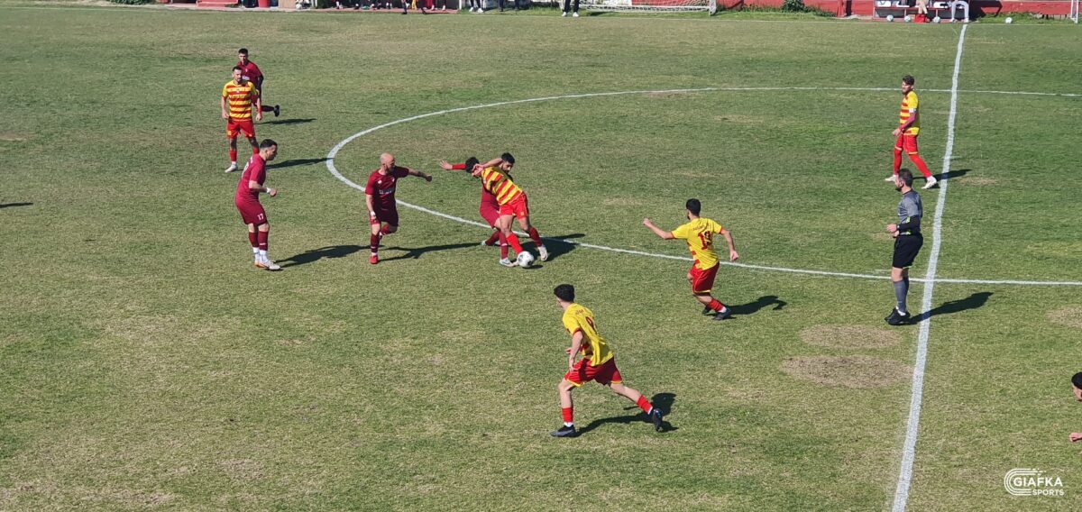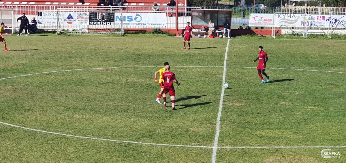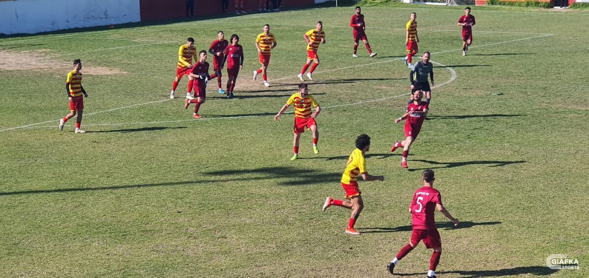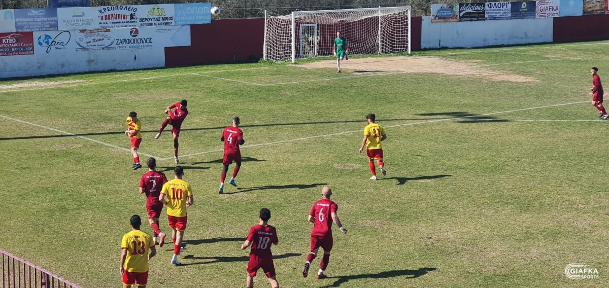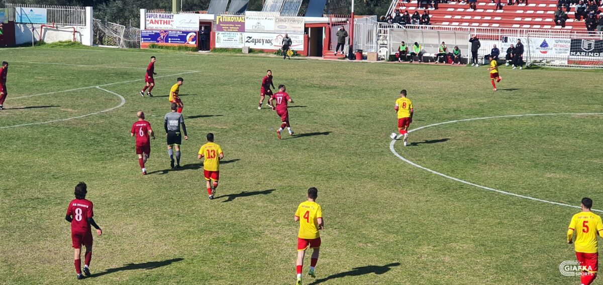 Στο 42’ ήρθε η πρώτη καλή στιγμή για τους «βυσσινί» όταν απ’ την παράλληλη πάσα του Λάντζιου η μπάλα έφτασε στον Κεφαλιανό, το σουτ του οποίου κατέληξε άουτ. Στο 45’ ο Κοντογιώργος που προωθήθηκε πήρε την κεφαλιά με τον Πανούση να διώχνει σε κόρνερ.