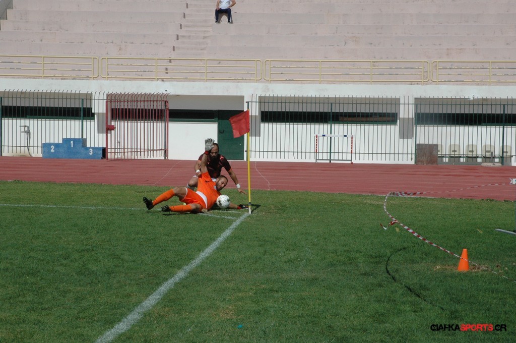Στο 23’ ο Σαλαμαστράκης έκανε το φάουλ με τον Κονταντώνη να μπλοκάρει και η καλύτερη φάση του πρώτου ημιχρόνου ήρθε στο 41’ όταν ο Καλημέρης εκτέλεσε το φάουλ και ο Κονταντώνης απομάκρυνε στην δεξιά του γωνία.