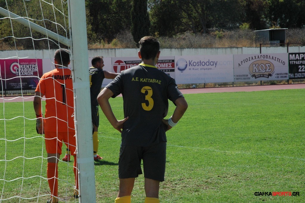 Σε ένα παιχνίδι που θα ξεχαστεί γρήγορα αφού οι καλές φάσεις μπροστά στις δύο εστίες ήταν ελάχιστες η Κατταβιά κατάφερε να επικρατήσει με 0-1 της Α.Ε Κω με γκολ του Καλημέρη για την 2η αγωνιστική της Α’ κατηγορίας και κάνει έτσι το 2/2 στο ξεκίνημα του πρωταθλήματος. Οι «βυσσινί» χρειάζονται χρόνο ακόμα για να «δέσουν» σαν ομάδα και να μπορούν να βγάλουν πράγματα στο χορτάρι. Με δέκα παίκτες ολοκλήρωσαν το ματς και οι δύο ομάδες αφού απ’ την Α.Ε Κω αποβλήθηκε με δεύτερη κίτρινη ο Νυστάζος στο 66’ και απ’ την Κατταβιά με  απευθείας κόκκινη ο Πάπα για εξύβριση προς τον επόπτη.