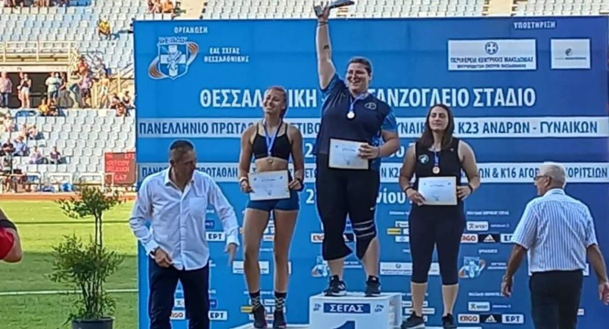 H μεγάλη κυρία της ελληνικής σφαιροβολίας, σήμερα στο Πανελλήνιο Πρωτάθλημα Α/Γ στη Θεσσαλονίκη, απέδειξε πως θα είναι “στο θρόνο” του αθλήματος για πολύ καιρό, αφού κατέκτησε δύο χρυσά μετάλλια, στην κατηγορία Κ23 και σ’ εκείνη των Ανδρών/Γυναικών.