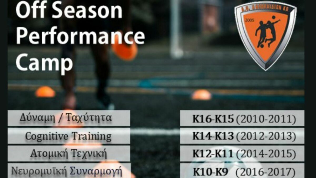 Εχουν ξεκινήσει οι εγγραφές μας για το off season Performance camp…ένα camp με σημασία και στόχους ….η μεταβατική περίοδος αποτελεί ένα κρίσιμο στάδιο για την αποκατάσταση ,την ανανέωση και την προετοιμασία του ποδοσφαιριστή για την νέα αγωνιστική χρονιά. Η σημασία ενός τέτοιου camp έγκειται στην ευκαιρία που προσφέρει στον μικρό αθλητή να δουλέψει εξατομικευμένα πάνω στις αδυναμίες του ,να ενισχύσει τα δυνατά του σημεία και να προλάβει πιθανούς τραυματισμούς με στοχευμένη προπόνηση.