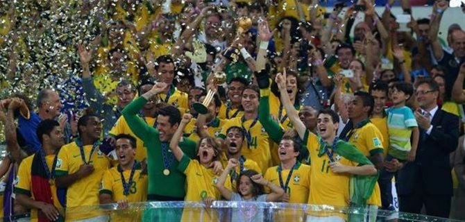 Μήνυμα ενόψει του Μουντιάλ της επόμενης χρονιάς έστειλαν οι Βραζιλιάνοι στους παγκόσμιους πρωταθλητές Ισπανούς συντρίβοντάς τους με 3-0 στον τελικό του Κυπέλλου Συνομοσπονδιών που ολοκληρώθηκε τα ξημερώματα της Δευτέρας.