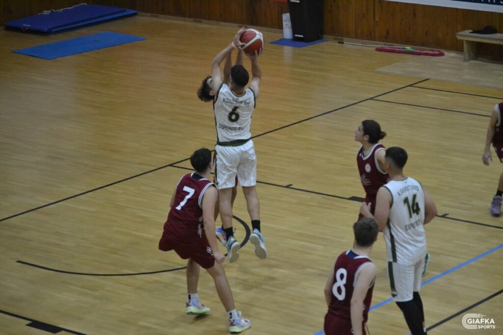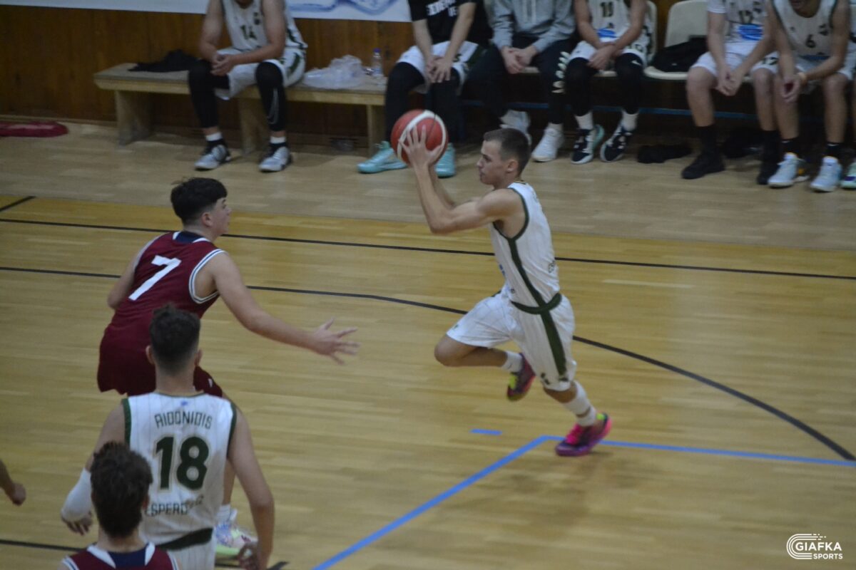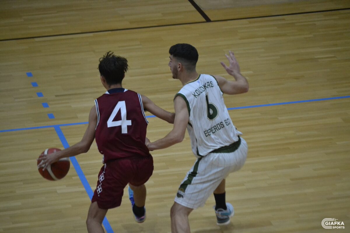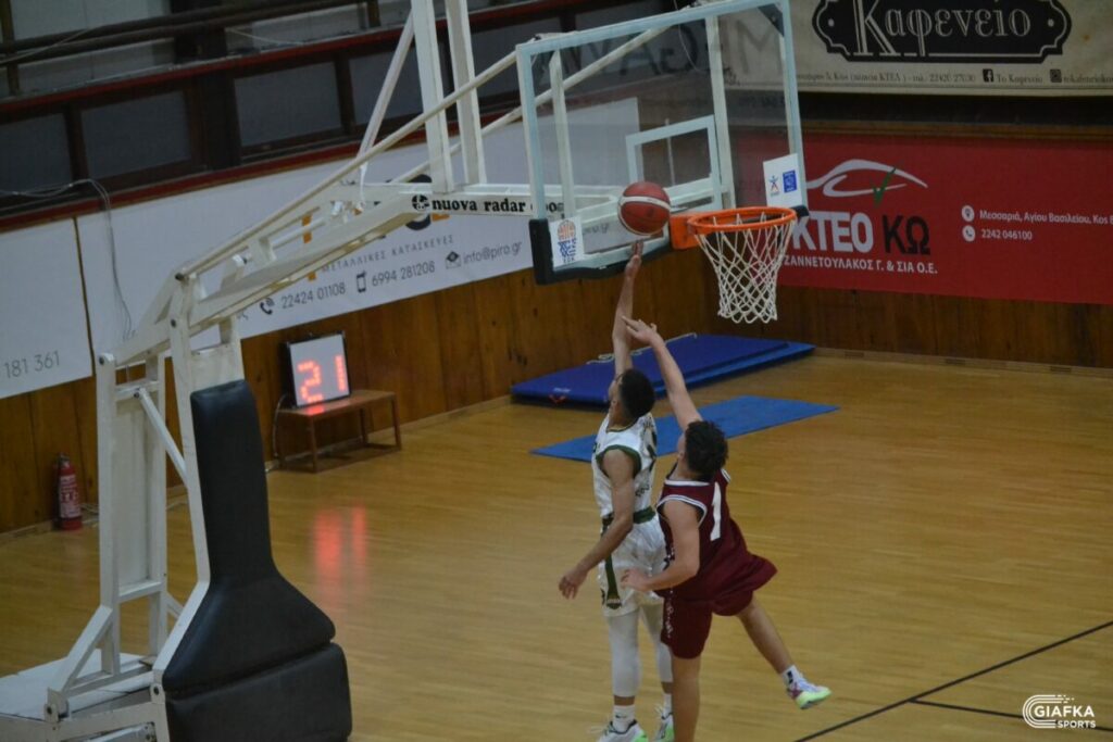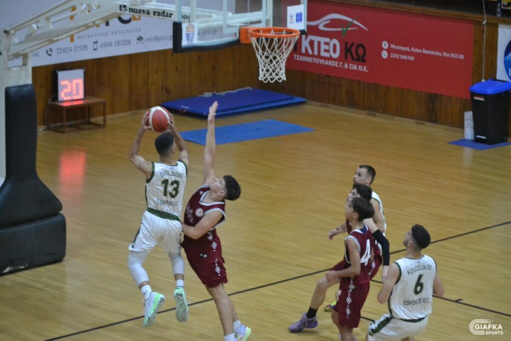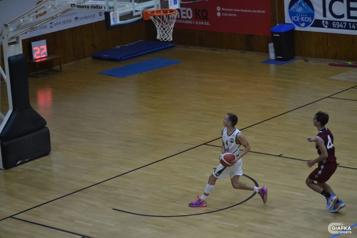 Με τους Βίλα, Κουζούκα, Αηδονίδη και Παπούλη να πετυχαίνουν διψήφιο αριθμό πόντων, ο Έσπερος Κω έφτασε άνετα στην επικράτηση, πατώντας το πόδι στο γκάζι από το ξεκίνημα του αγώνα. Το α’ δεκάλεπτο τελείωσε με 30-4 και το ημίχρονο με +44 (56-12), ενώ η ψαλίδα άνοιξε κι άλλο για τον Έσπερο, που διατηρεί το αήττητο του.
