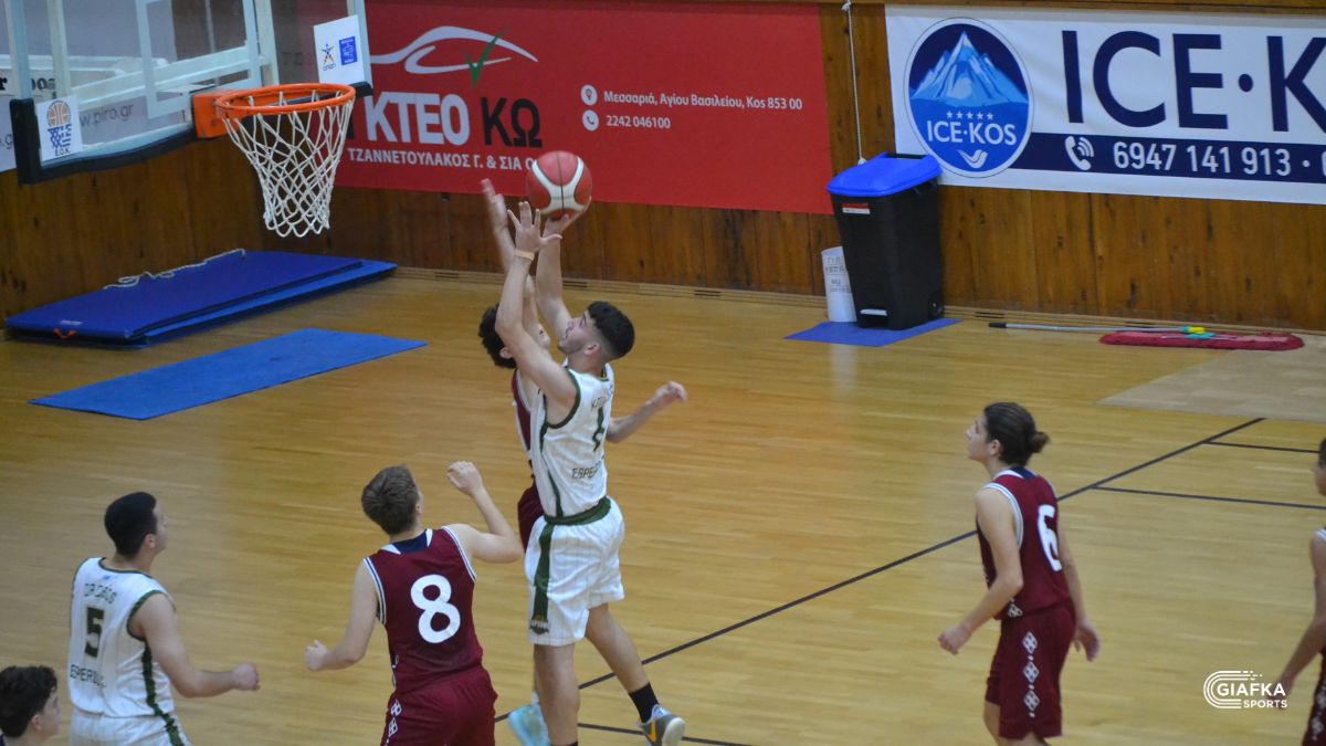 Οι έφηβοι του Εσπέρου Κω συνέτριψαν με +63 (99-36) τον Πανιώνιο Λέρου και έκαναν το 6 στα 6 στον όμιλο νήσων, συνεχίζοντας το δρόμο τους προς τον τίτλο στα Δωδεκάνησα. Η ομάδα του Δημήτρη Χατζηστέργου προσέφερε σκορ και θέαμα στο κλειστό γυμναστήριο της Κω κάνοντας επίδειξη δύναμης στον πιο αδύναμο Πανιώνιο Λέρου.