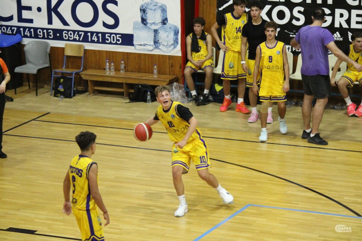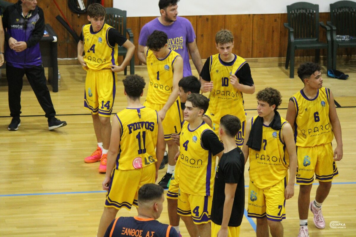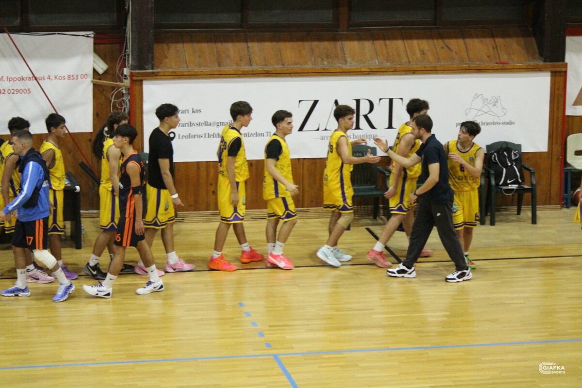 Ο Φοίβος Κω σημείωσε την πρώτη του νίκη στο εφηβικό πρωτάθλημα, επικρατώντας του Ξάνθου Πάτμου με 52-40 στον όμιλο νήσων. Η ομάδα του Κώστα Σουλιώτη είχε το προβάδισμα από τα πρώτα λεπτά, βρήκε περισσότερες επιθετικές λύσεις και διαχειρίστηκε σωστά το προβάδισμα μέχρι το τέλος, παρά την προσπάθεια επιστροφής των φιλοξενούμενων στο δεύτερο μέρος.