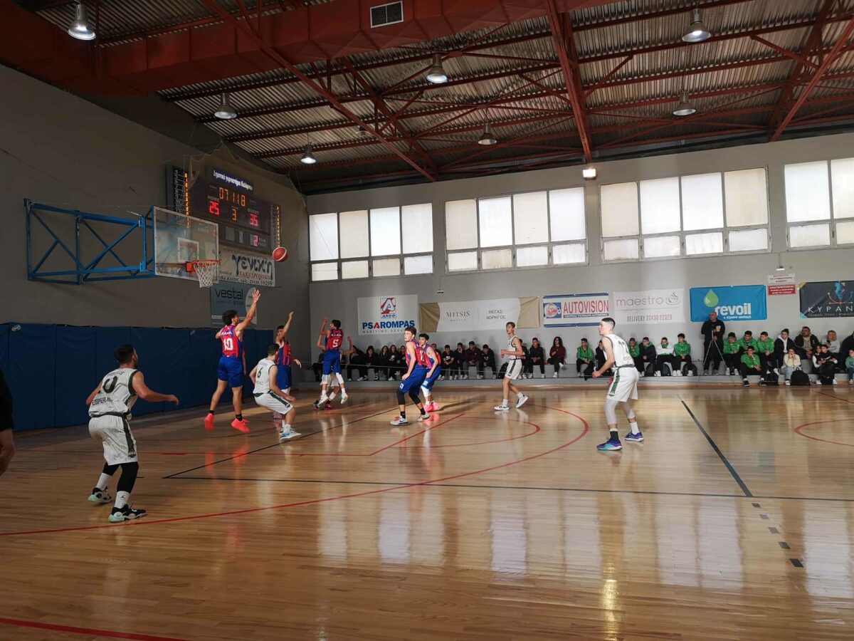 Ανεβάζοντας την απόδοση τους κυρίως στο δεύτερο μέρος οι έφηβοι του Εσπέρου επικράτησαν με 49-68 στην Κάλυμνο της Ε.Α.ΚΑ και συνεχίζουν την άητττητη πορεία τους στο πρωτάθλημα. Για την ομάδα του Δημήτρη Χατζηστέργου, πρώτος σκόρερ ήταν ο Βίλα που σταμάτησε στους 25 πόντους με τον Λαουμζή να προσθέτει άλλους 14.