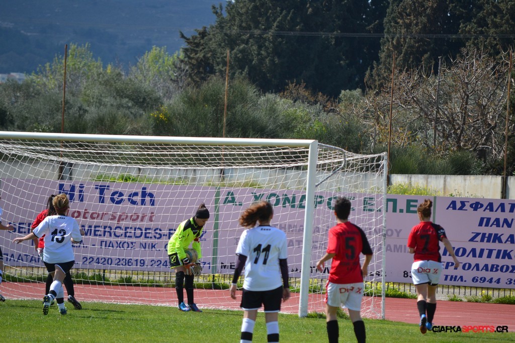 Το δεύτερο ημίχρονο ξεκίνησε και πάλι με τους καλύτερους οιωνούς για τις φιλοξενούμενες,καθώς κατάφεραν και πάλι να σκοράρουν όταν η Μιχαλοπούλου έκανε την σέντρα την Σταμόγλου να διώχνει,αλλά στην επαναφορά από το ύψος του πέναλτι η Παπαβασιλείου έστειλε την μπάλα στα δίχτυα για το 0-2.