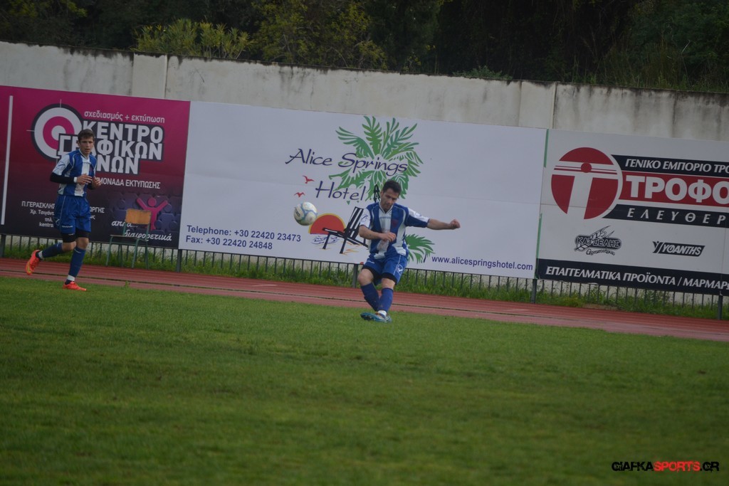 13′ ΓΚΟΛ!! Ωραία βαθιά μπαλιά του Τσάπαλη στον Χατζησταμούλο, με τον τελευταίο να κοντρολάρει όμορφα και να σουτάρει στην δεξιά γωνία του Τσουκαλά για το 0-1.