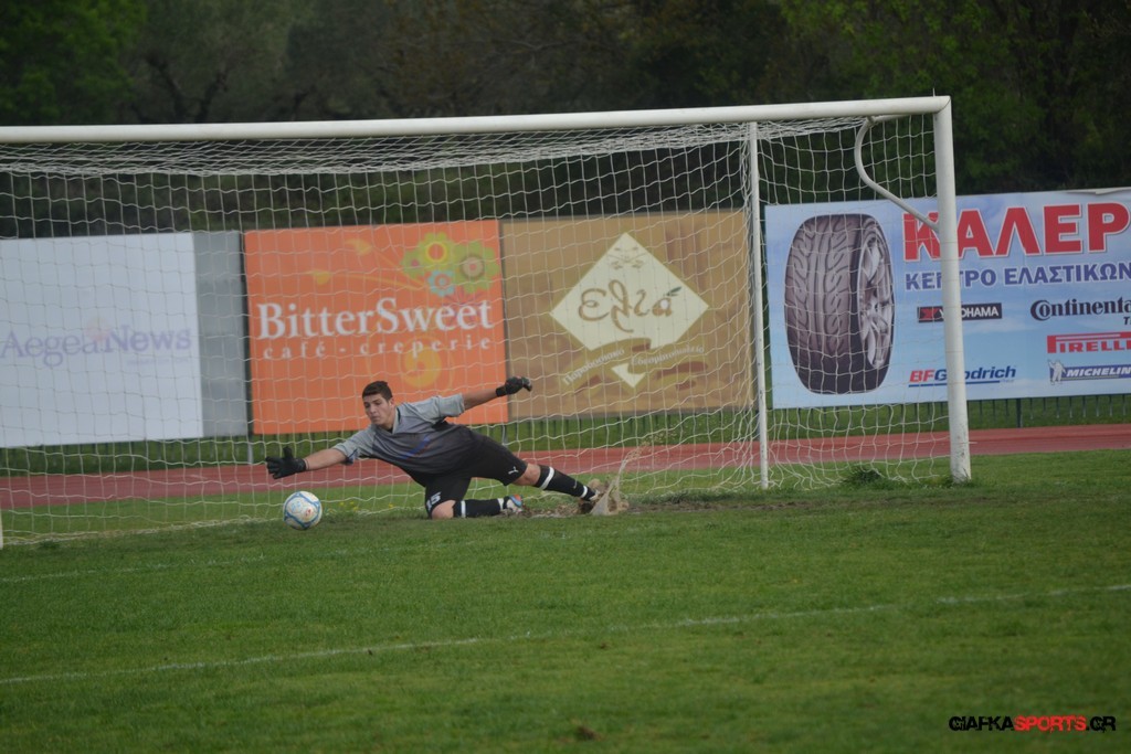 εστία του Τσουκαλά στο 67’ με τον νεαρό τερματοφύλακα να  αποκρούει σε κόρνερ.