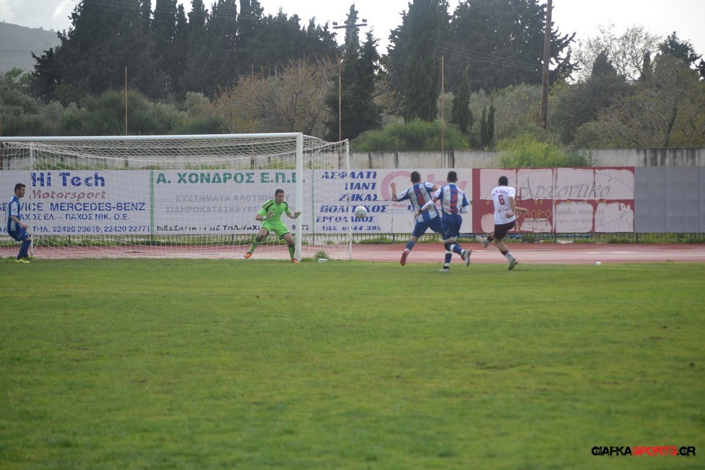 56′ Ωραία πάσα του Χατζησταμούλου στον Γαμπιεράκη, το σουτ του τελευταίου πέρασε πάνω από τα δοκάρια του Τσουκαλά.