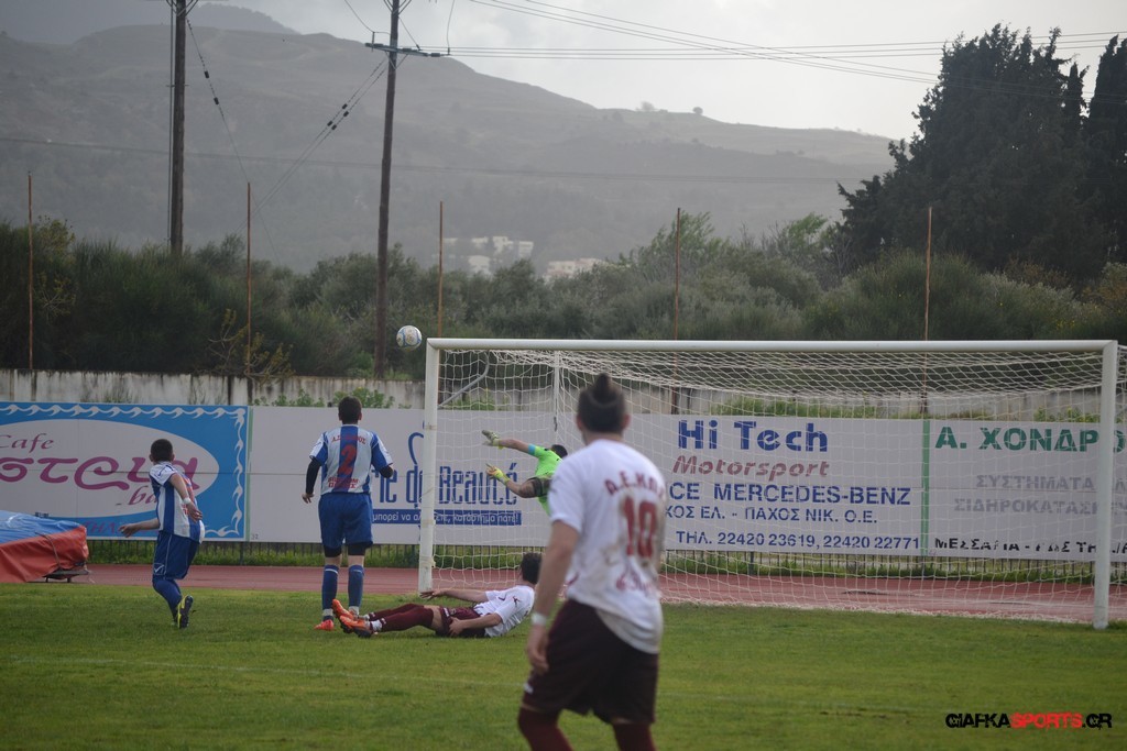 33′ Σέντρα του Τζουμάκα από τα δεξιά, ψαλιδάκι του Μέτια απόκρουσε εντυπωσιακά στην δεξιά του γωνία ο Γρύλλης.