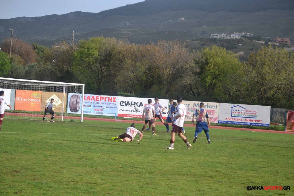 70′ Μεγάλη ευκαιρία για την Α.Ε Κω, ο Πηλιούρας μπήκε ωραία από τα δεξιά έκανε την παράλληλη σέντρα αλλά η προβολή του Τζουμάκα πέρασε ελάχιστα έξω από το δεξί κάθετο δοκάρι του Γρύλλη.