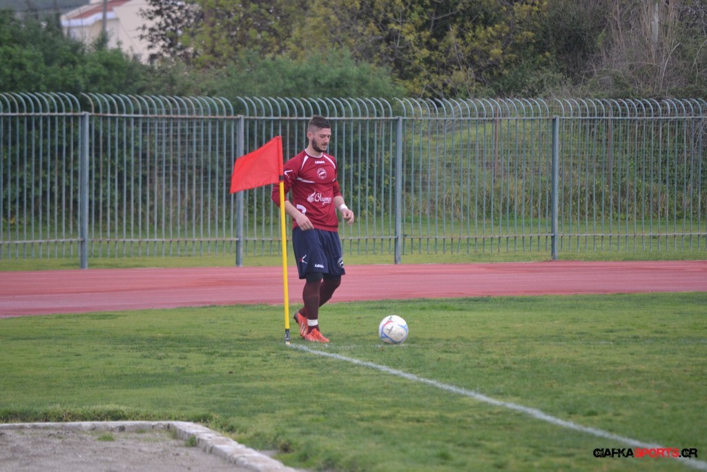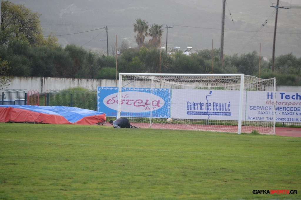73′ Απευθείας εκτέλεση φάουλ από τον Τζουμάκα, απόκρουσε ο Γρύλλης με την μπάλα να βρίσκει το οριζόντιο δοκάρι και να περνάει κόρνερ.