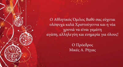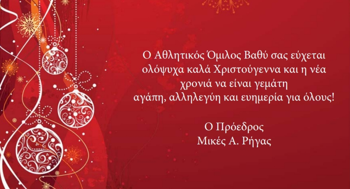 Ο Αθλητικός Όμιλος Βαθύ σας εύχεται ολόψυχα Καλά Χριστούγεννα και η νέα χρονιά να είναι γεμάτη αγάπη , αλληλεγγύη και ευημερία για όλους.
