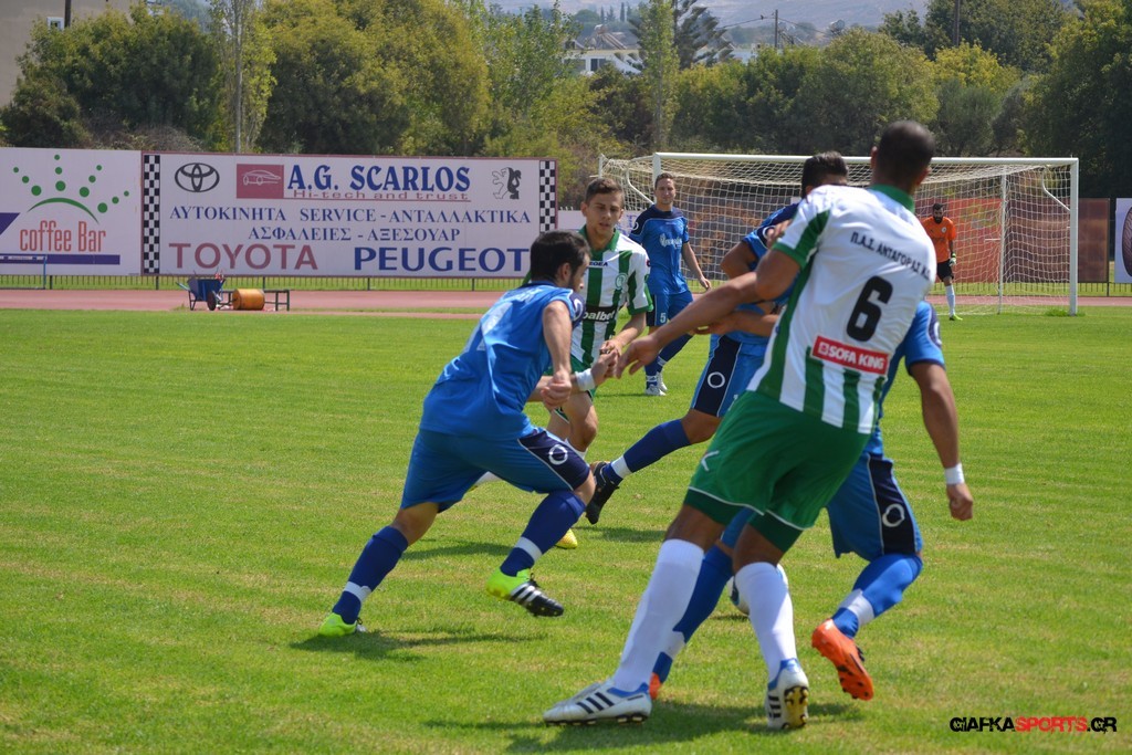 Ο Ανταγόρας είχε την ευκαιρία να φτάσει στο γκολ όταν στο 36’ ο Τσιφτσίδης πίεσε τους αμυντικούς έκλεψε την μπάλα αλλά δε μπόρεσε από κοντά να νικήσει τον Τόππο στέλνοντας την μπάλα στο δεξί του δοκάρι και σα να μην έφτανε αυτό για τους «πράσινους» στην τελευταία φάση του ημιχρόνου δέχτηκαν  εκείνοι το τέρμα.