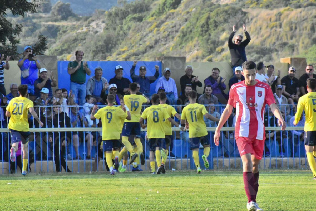 Ο Απόλλωνας των αρκετών απουσιών ήθελε δύο αποτελέσματα κόντρα στην Θύελλα Χαλκειού προκειμένου να φτάσει στην επίτευξη του μεγάλου του στόχου, που ειναι η άνοδο στην Γ Εθνική. Η ομάδα του Παναγιώτη Σπάρταλη το κατάφερε και πανηγύρισε με τον κόσμο της ένα ιστορικό επίτευγμα. Οι γηπεδούχοι έβαλαν από νωρίς τις βάσεις για την μεγάλη νίκη. Μόλις στο 2΄ ο Ιντρίζι πήγε κάθετα προς την περιοχή και την κατάλληλη στιγμή βρήκε τον Ντάνιελ Σπαχιού, που πλάσαρε στην αριστερή γωνία του Σεράφη για το 1-0. Το γρήγορο γκολ έδωσε ώθηση στον Απόλλωνα που θα μπορούσε να είχε κάνει δύο τα τέρματα του, όταν στο 19΄ όταν ο Μαντικός βρήκε κάθετα τον Σπαχιού και ο τελευταίος από το ύψος της μεγάλης περιοχής σημάδεψε το δεξί κάθετο δοκάρι του Σεράφη.