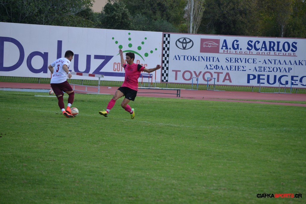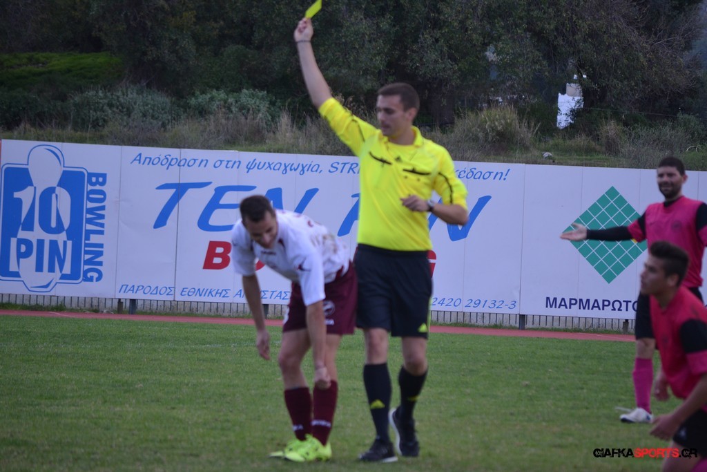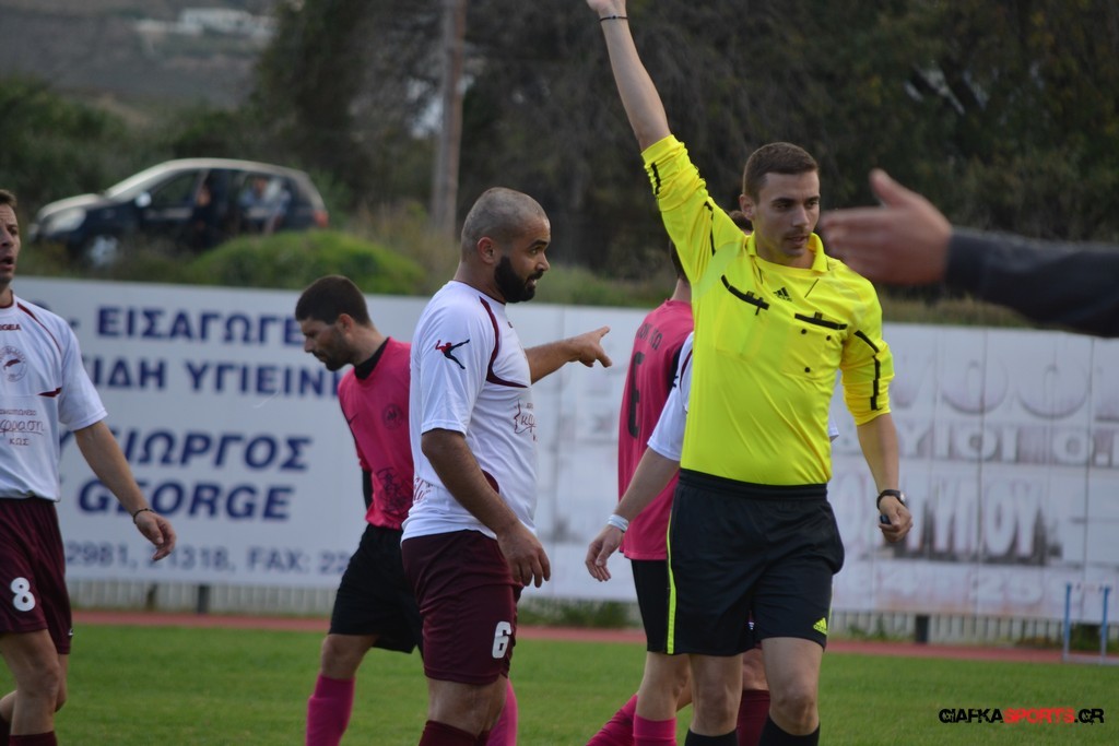 55′ Απευθείας κόκκινη κάρτα απ’ τον Δημαράκη στον Χρήστο Χατζηφούντα ο οποίος αντέδρασε στο σκληρό φάουλ που του έγινε και κλώτσησε τον Κατσιούλη.