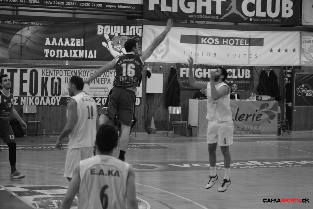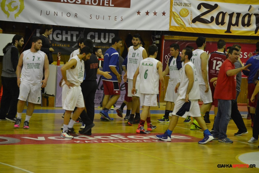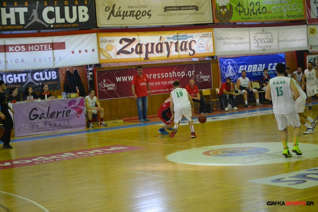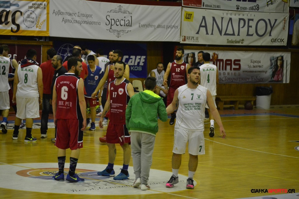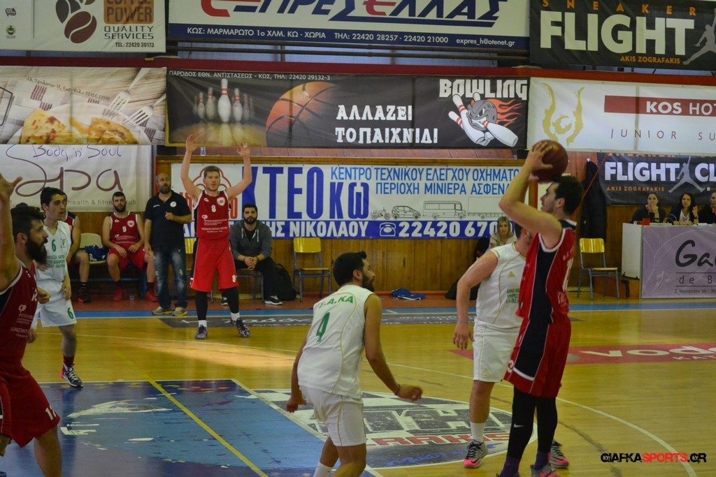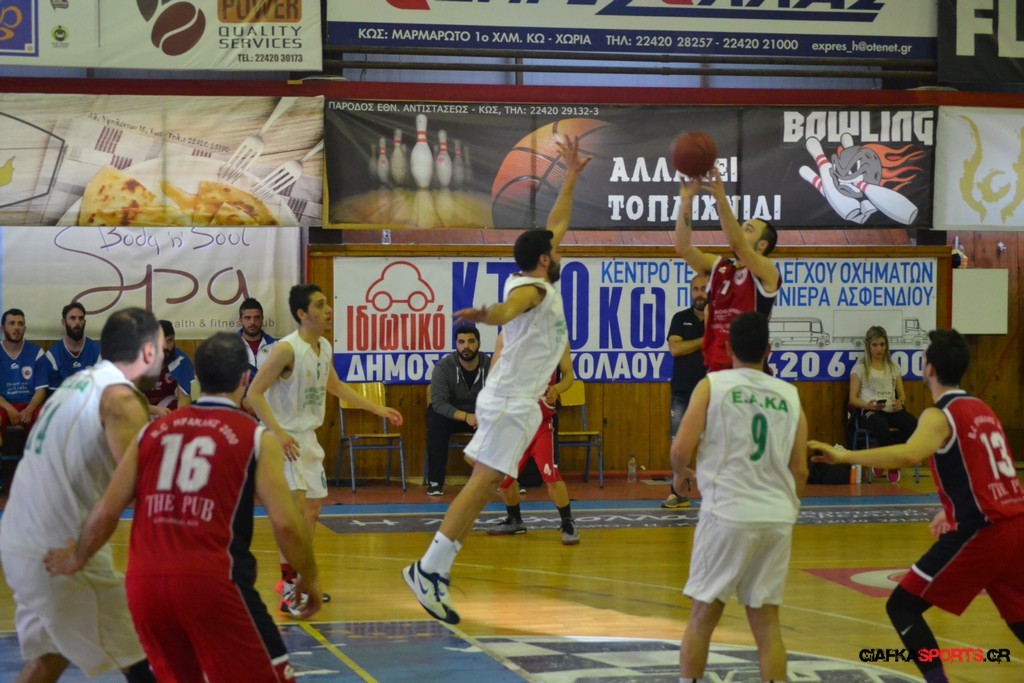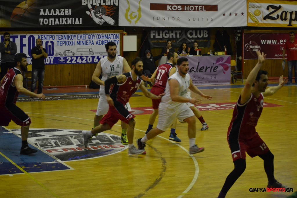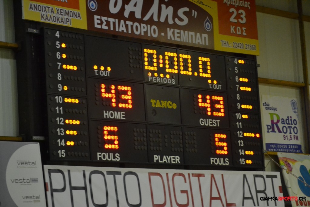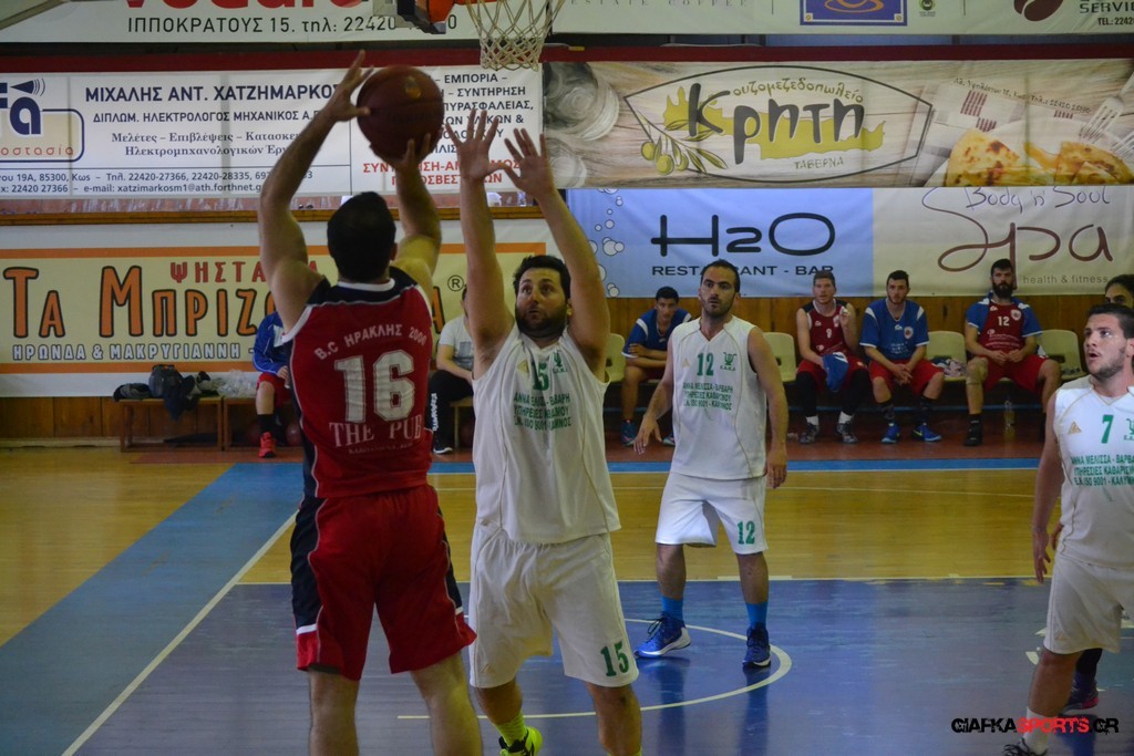 Η ομάδα της Καρδάμαινας επικράτησε με 47-43 στην παράταση της Ε.Α. Καλύμνου και ισοφάρισε σε 1-1 τη σειρά των αγώνων, με το τρίτο παιχνίδι να διεξάγεται στο κλειστό γυμναστήριο της Κω. Στο παιχνίδι «έσπασαν καρδιές» με τους Καλύμνιους να μην… «ματώνουν» το διχτάκι στο έξτρα πεντάλεπτο και την ομάδα του Γιάννη Παπούλη να πανηγυρίζει έστω και με το ζόρι μία πολύτιμη νίκη. Για να πάει το παιχνίδι στην παράταση χρειάστηκε μία βολή του Τσιάτσιου, μόλις 3.5’ πριν το τέλος, ώστε το σκορ να γίνει 43-43. Ας πάρουμε τα πράγματα από την αρχή… Ο Ηρακλής 2000 ξεκίνησε καλύτερα και προηγήθηκε 15-7 (6’), ενώ επέβαλε πλήρως το ρυθμό του και ξέφυγε 24-13 στο 18’. Είναι χαρακτηριστικό ότι η Ε.Α.ΚΑ. σε διάστημα οκτώ λεπτών πέτυχε μόλις μία βολή, ωστόσο κατάφερε να μειώσει στο ημίχρονο σε 24-19. Στο β’ ημίχρονο, η εικόνα του αγώνα άλλαξε με την Ε.ΑΚΑ. να είναι καλύτερη και να μειώνει με τρίποντο του Κοκκινίδη σε 28-27 (27’), ενώ με προσπάθεια του Ζερβού πέρασε μπροστά 28-29 (28’). Το τρίτο δεκάλεπτο έληξε 34-33, ενώ μ’ ένα ξέσπασμα ο Ηρακλής 2000 έκανε το 41-34 (34.30’) με γκολ-φάουλ του Γούναρη και δίποντο του Χριστοδούλου. Εκεί που πίστεψαν όλοι ότι το παιχνίδι είχε τελειώσει, η Ε.Α.ΚΑ. επέστρεψε δυναμικά.