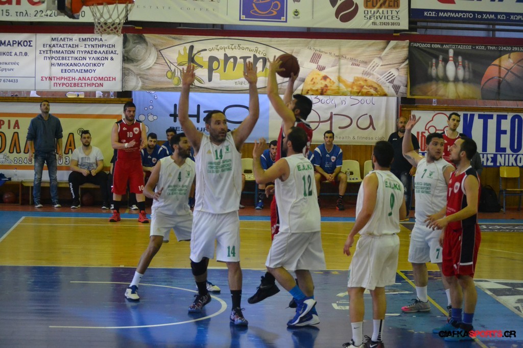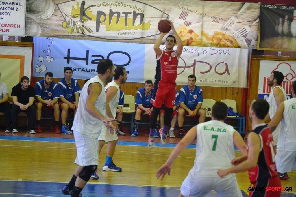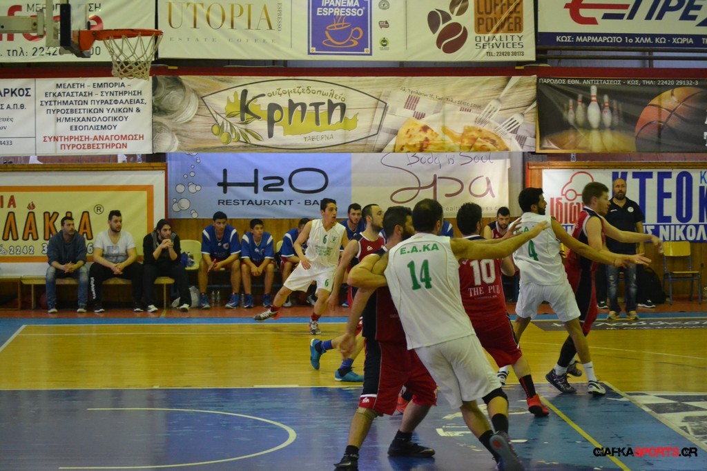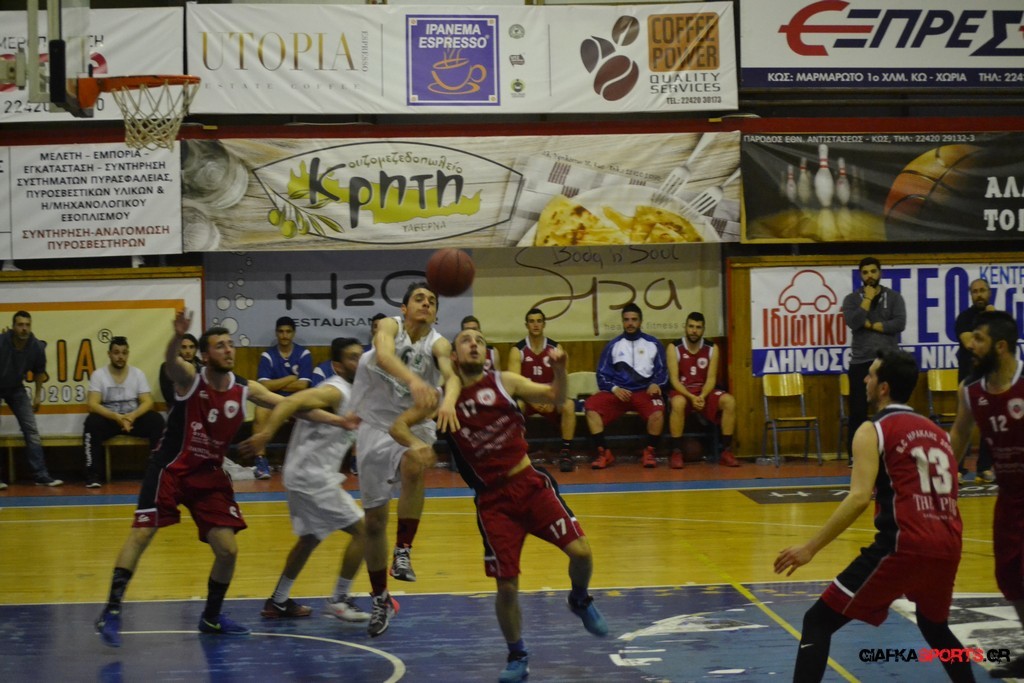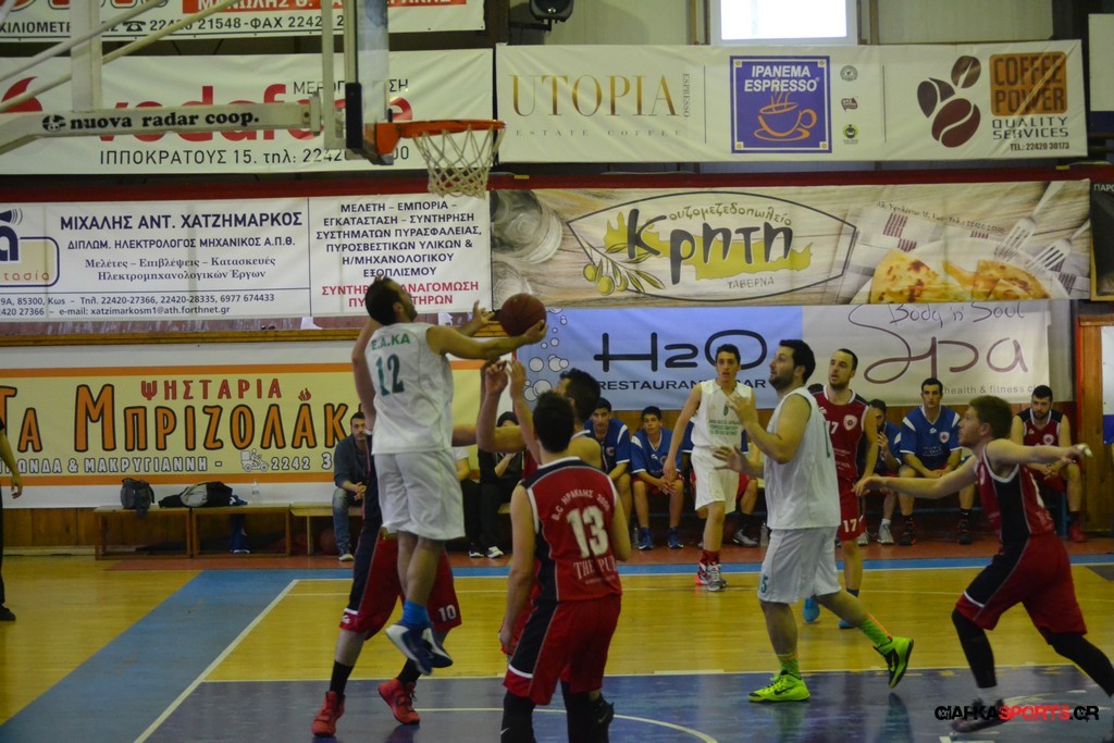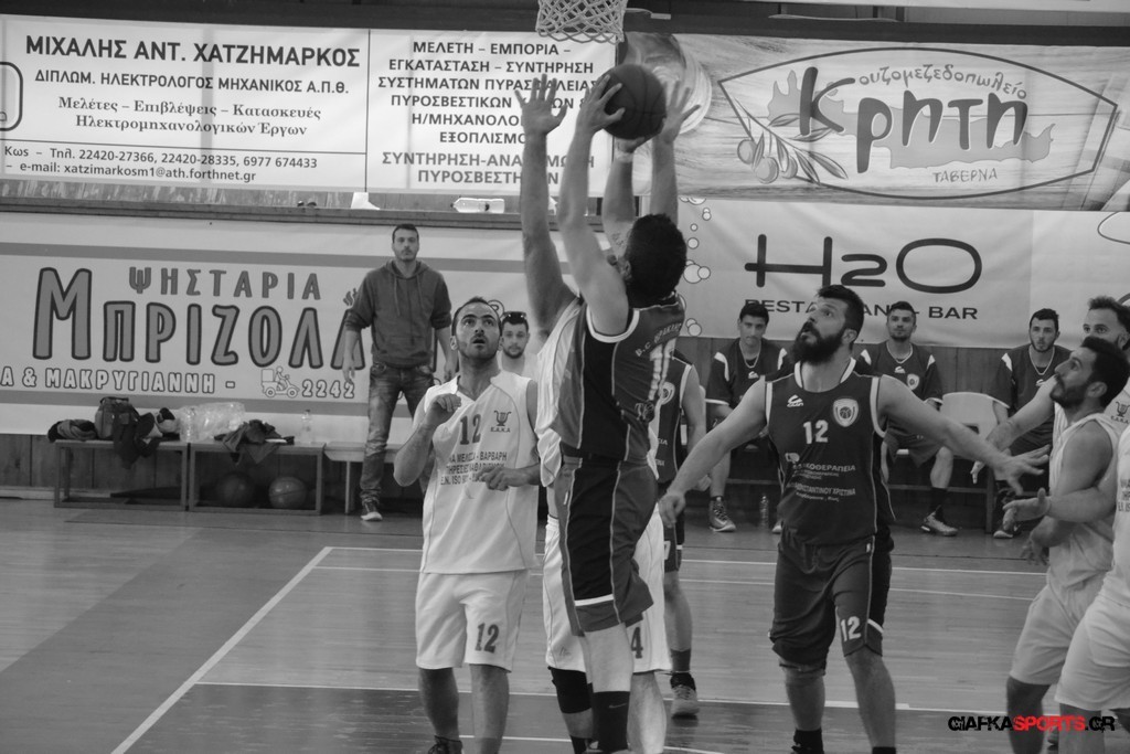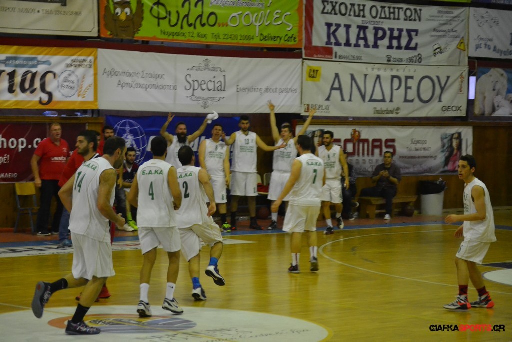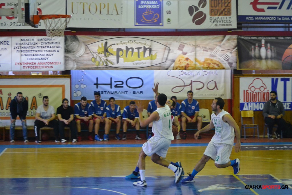 Η ομάδα της Καρδάμαινας επικράτησε με 47-43 στην παράταση της Ε.Α. Καλύμνου και ισοφάρισε σε 1-1 τη σειρά των αγώνων, με το τρίτο παιχνίδι να διεξάγεται στο κλειστό γυμναστήριο της Κω. Στο παιχνίδι «έσπασαν καρδιές» με τους Καλύμνιους να μην… «ματώνουν» το διχτάκι στο έξτρα πεντάλεπτο και την ομάδα του Γιάννη Παπούλη να πανηγυρίζει έστω και με το ζόρι μία πολύτιμη νίκη. Για να πάει το παιχνίδι στην παράταση χρειάστηκε μία βολή του Τσιάτσιου, μόλις 3.5’ πριν το τέλος, ώστε το σκορ να γίνει 43-43. Ας πάρουμε τα πράγματα από την αρχή… Ο Ηρακλής 2000 ξεκίνησε καλύτερα και προηγήθηκε 15-7 (6’), ενώ επέβαλε πλήρως το ρυθμό του και ξέφυγε 24-13 στο 18’. Είναι χαρακτηριστικό ότι η Ε.Α.ΚΑ. σε διάστημα οκτώ λεπτών πέτυχε μόλις μία βολή, ωστόσο κατάφερε να μειώσει στο ημίχρονο σε 24-19. Στο β’ ημίχρονο, η εικόνα του αγώνα άλλαξε με την Ε.ΑΚΑ. να είναι καλύτερη και να μειώνει με τρίποντο του Κοκκινίδη σε 28-27 (27’), ενώ με προσπάθεια του Ζερβού πέρασε μπροστά 28-29 (28’). Το τρίτο δεκάλεπτο έληξε 34-33, ενώ μ’ ένα ξέσπασμα ο Ηρακλής 2000 έκανε το 41-34 (34.30’) με γκολ-φάουλ του Γούναρη και δίποντο του Χριστοδούλου. Εκεί που πίστεψαν όλοι ότι το παιχνίδι είχε τελειώσει, η Ε.Α.ΚΑ. επέστρεψε δυναμικά.