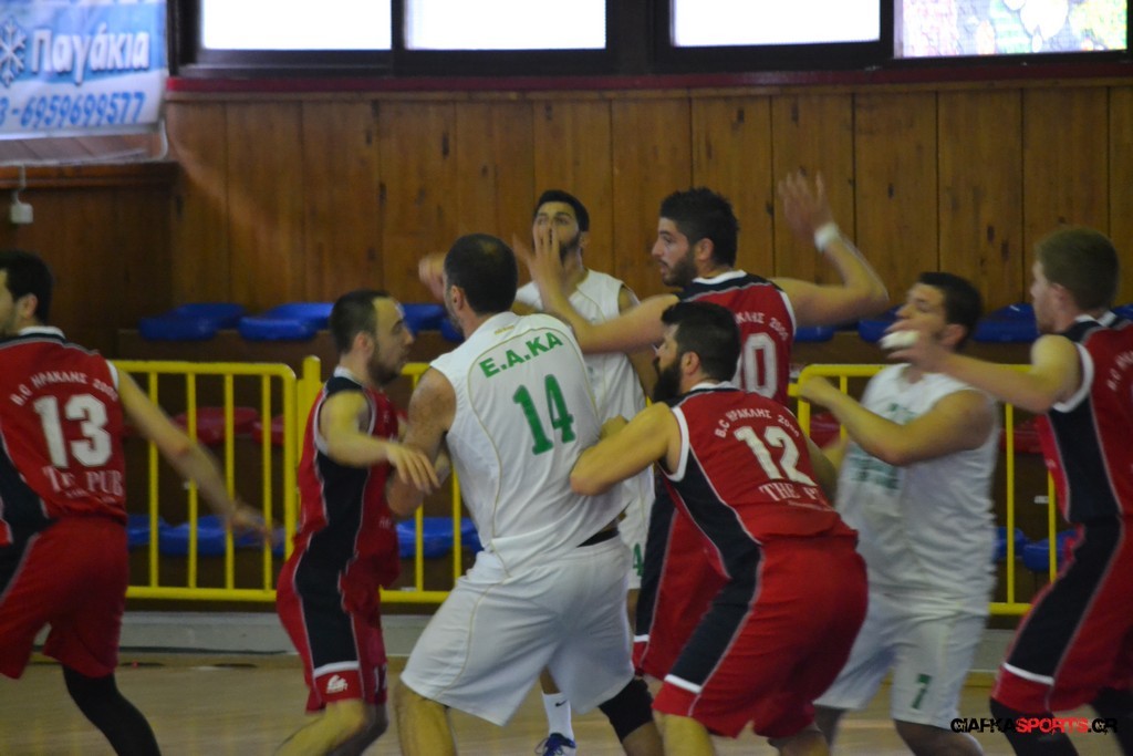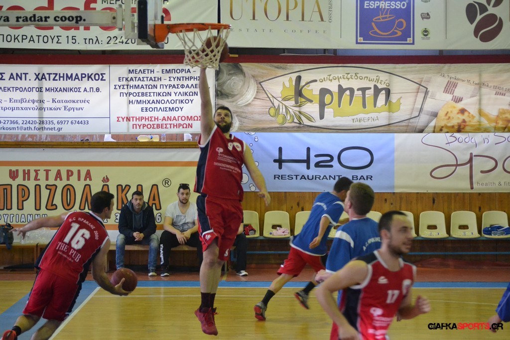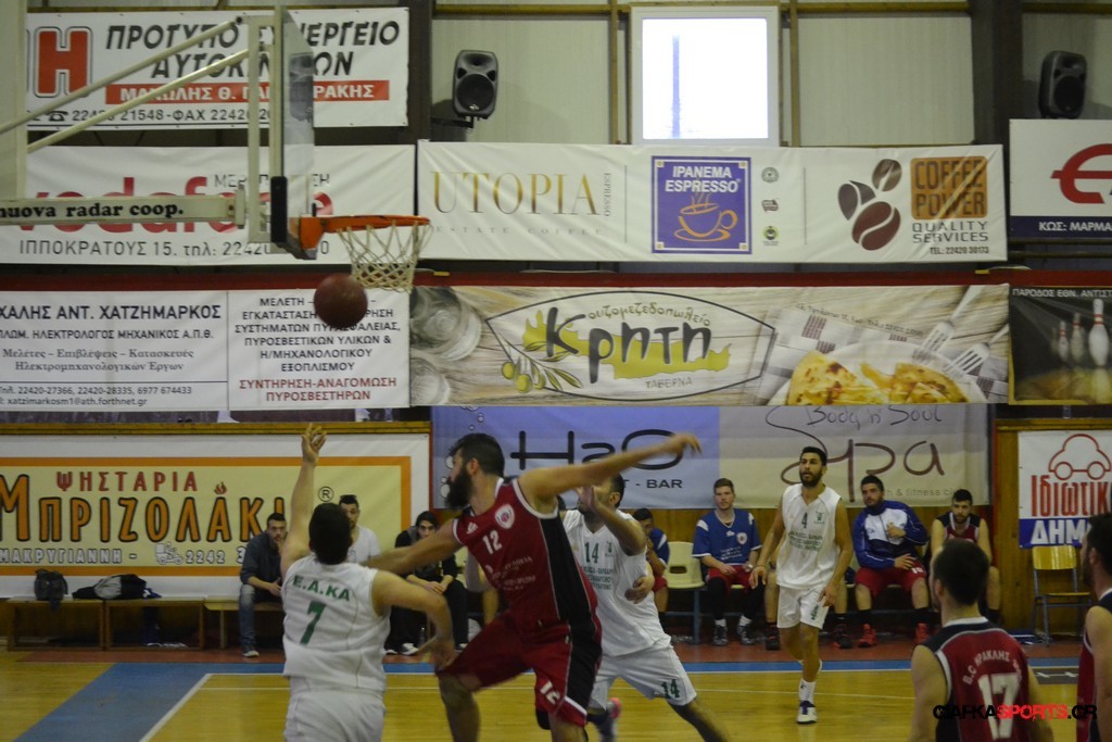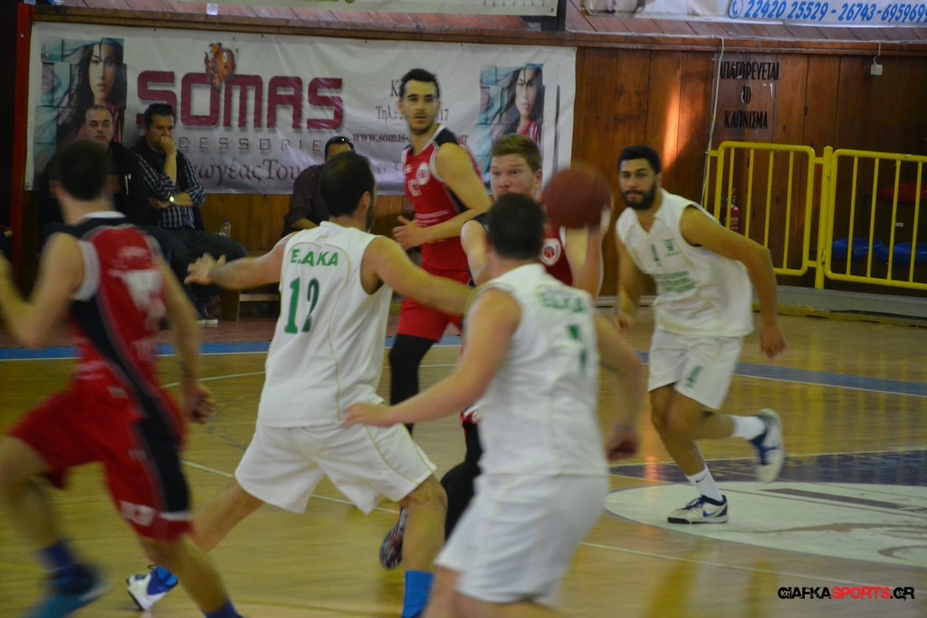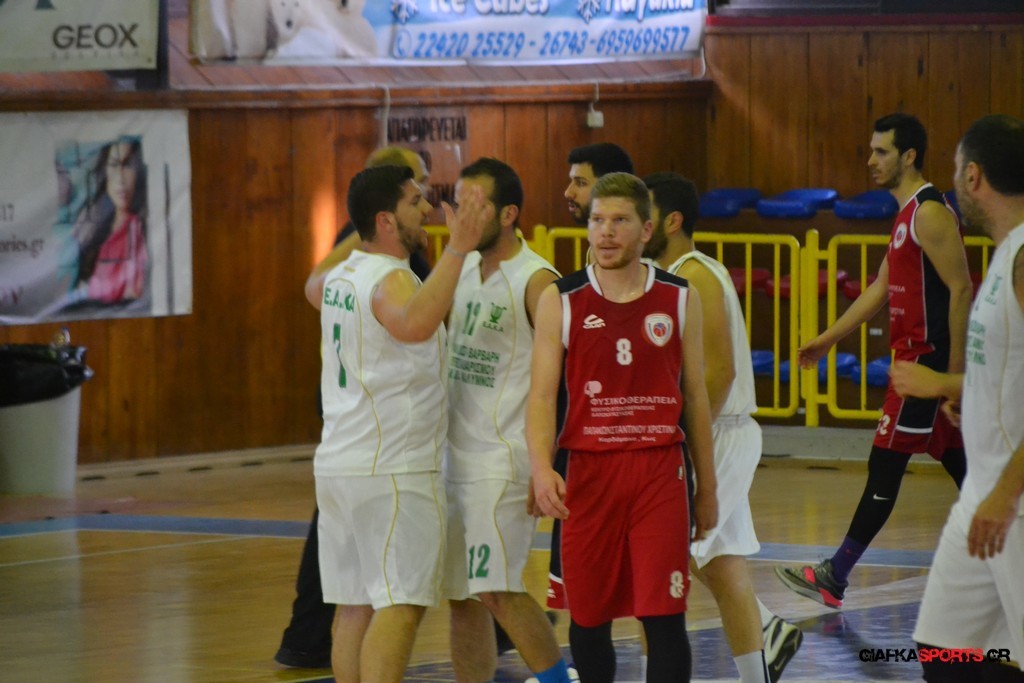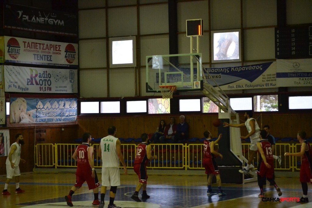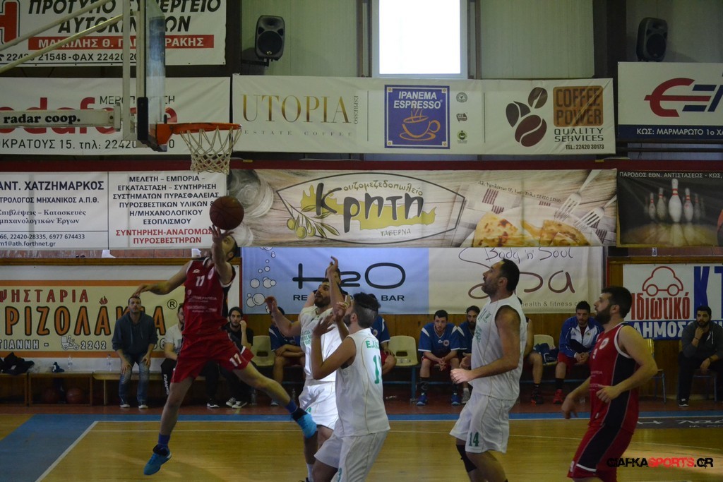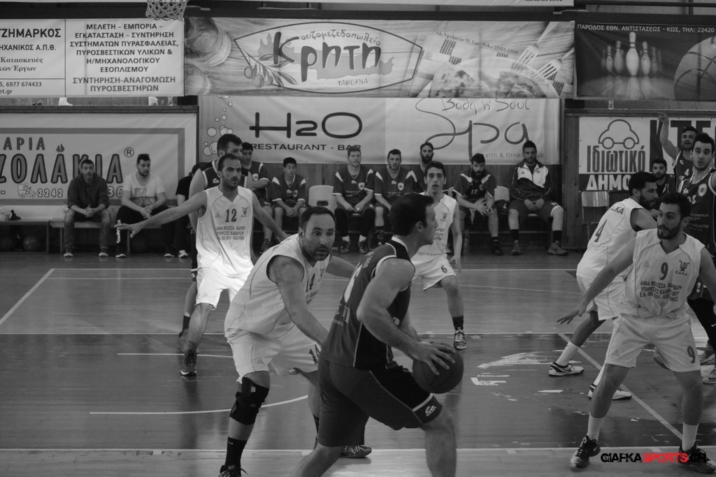 Η ομάδα της Καρδάμαινας επικράτησε με 47-43 στην παράταση της Ε.Α. Καλύμνου και ισοφάρισε σε 1-1 τη σειρά των αγώνων, με το τρίτο παιχνίδι να διεξάγεται στο κλειστό γυμναστήριο της Κω. Στο παιχνίδι «έσπασαν καρδιές» με τους Καλύμνιους να μην… «ματώνουν» το διχτάκι στο έξτρα πεντάλεπτο και την ομάδα του Γιάννη Παπούλη να πανηγυρίζει έστω και με το ζόρι μία πολύτιμη νίκη. Για να πάει το παιχνίδι στην παράταση χρειάστηκε μία βολή του Τσιάτσιου, μόλις 3.5’ πριν το τέλος, ώστε το σκορ να γίνει 43-43. Ας πάρουμε τα πράγματα από την αρχή… Ο Ηρακλής 2000 ξεκίνησε καλύτερα και προηγήθηκε 15-7 (6’), ενώ επέβαλε πλήρως το ρυθμό του και ξέφυγε 24-13 στο 18’. Είναι χαρακτηριστικό ότι η Ε.Α.ΚΑ. σε διάστημα οκτώ λεπτών πέτυχε μόλις μία βολή, ωστόσο κατάφερε να μειώσει στο ημίχρονο σε 24-19. Στο β’ ημίχρονο, η εικόνα του αγώνα άλλαξε με την Ε.ΑΚΑ. να είναι καλύτερη και να μειώνει με τρίποντο του Κοκκινίδη σε 28-27 (27’), ενώ με προσπάθεια του Ζερβού πέρασε μπροστά 28-29 (28’). Το τρίτο δεκάλεπτο έληξε 34-33, ενώ μ’ ένα ξέσπασμα ο Ηρακλής 2000 έκανε το 41-34 (34.30’) με γκολ-φάουλ του Γούναρη και δίποντο του Χριστοδούλου. Εκεί που πίστεψαν όλοι ότι το παιχνίδι είχε τελειώσει, η Ε.Α.ΚΑ. επέστρεψε δυναμικά.
