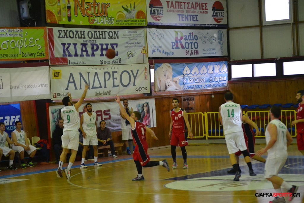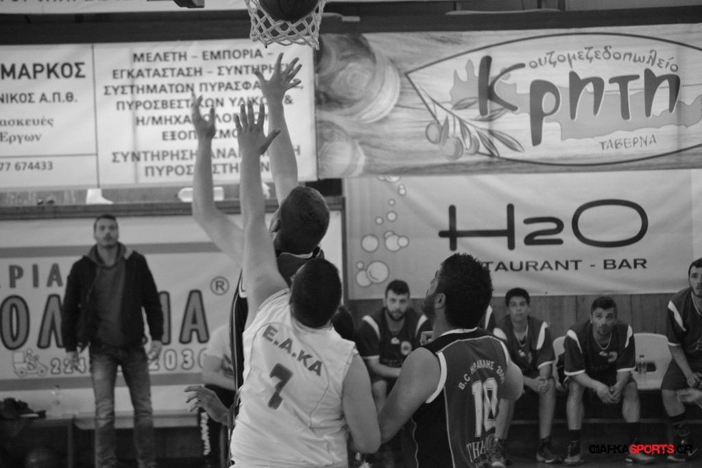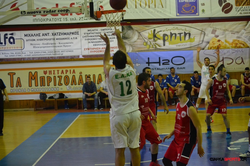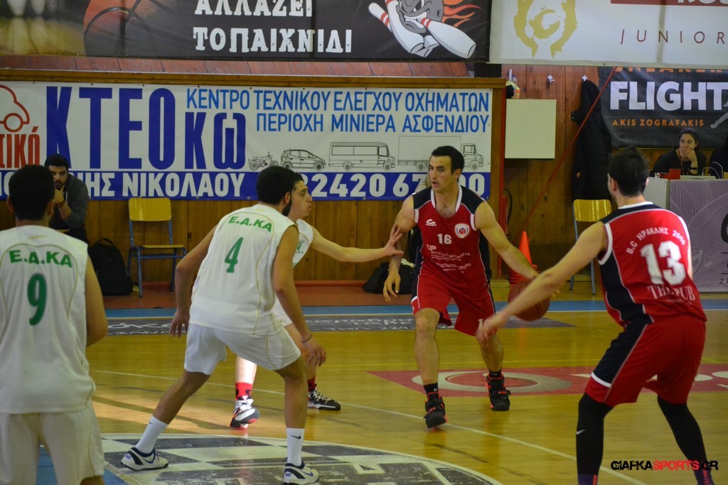 Με συνεχόμενα τρίποντα του Κοκκινίδη μείωσε σε 41-40 (37’), ενώ με δίποντο του Ζερβού πέρασε ξανά μπροστά 41-42 (1.42’ πριν το τέλος). Οι γηπεδούχοι ισοφάρισαν με μία βολή (42-42), ενώ ο έμπειρος Σάββας με ½ βολές μόλις 16’’ πριν το τέλος έκανε το 42-43. Στην τελευταία επίθεση και συγκεκριμένα 3.5’ πριν το τέλος ο Τσιάτσιος κέρδισε φάουλ από τον Κοκκινίδη (θα μπορούσε να πετύχει και το καλάθι). Ευστόχησε στην πρώτη βολή και ισοφάρισε σε 43-43, με αποτέλεσμα το παιχνίδι να οδηγηθεί στην παράταση. Εκεί, ο Ηρακλής 2000 έκανε επιμέρους σκορ 4-0 (!) και πήρε την πολύτιμη νίκη, με την οποία θα υποδεχθεί ξανά την Ε.Α.ΚΑ. στο ίδιο γήπεδο με θα το φάιναλ-φορ των ανδρών. Αξίζει να σημειωθεί ότι ο Ηρακλής 2000 (δεν έπαιξε ο Μόσχος) έχασε και πάλι πολλές ελεύθερες βολές…