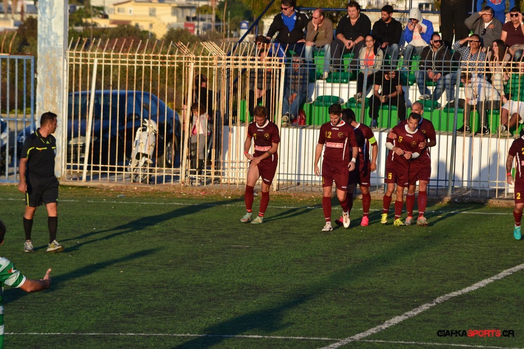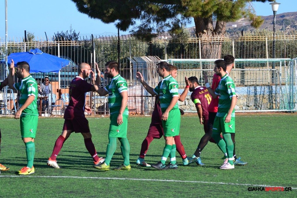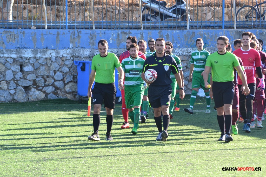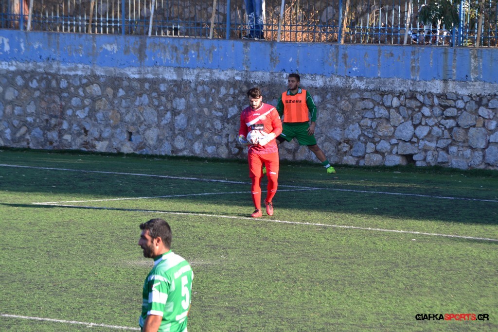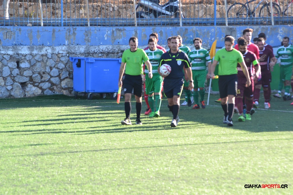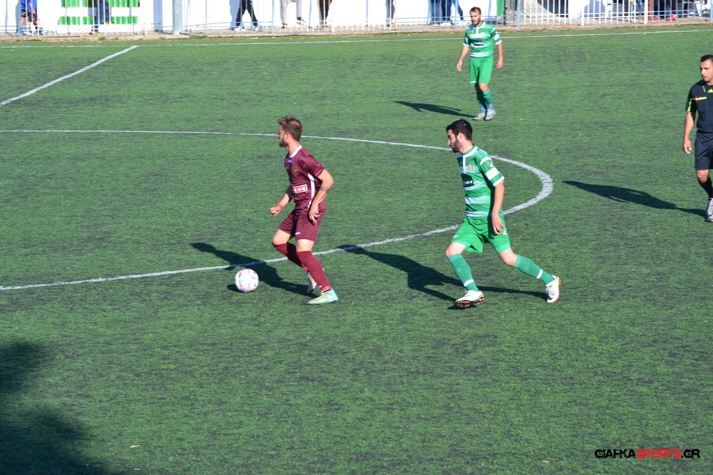 Οι φιλοξενούμενοι μπήκαν καλύτερα στον αγωνιστικό χώρο και προσπάθησαν κυρίως απ’ τα πλάγια, με την τριάδα των επιθετικών να αλλάζει συνεχώς θέσεις, να πατήσει την αντίπαλη περιοχή και αφού στο 15’ είχε δοκάρι με τον Δαμανάκη στο 20’ πήρε προβάδισμα στο σκορ όταν μετά από γύρισμα του Βασιλειάδη ο Στάμος κινήθηκε ωραία στην μικρή περιοχή και έκανε το 0-1 που ήταν και το αποτέλεσμα του πρώτου μέρους αφού στην συνέχεια το παιχνίδι δεν είχε ρυθμό και φάσεις μέχρι και το 45’.
