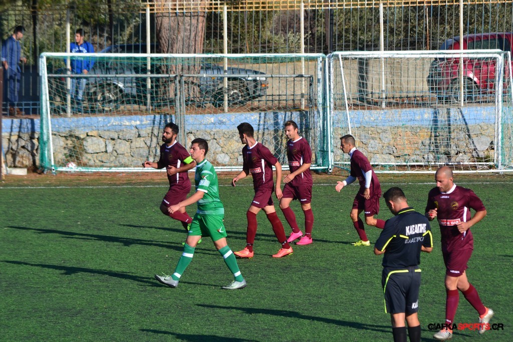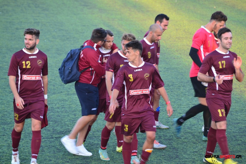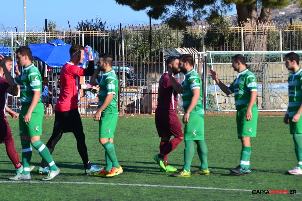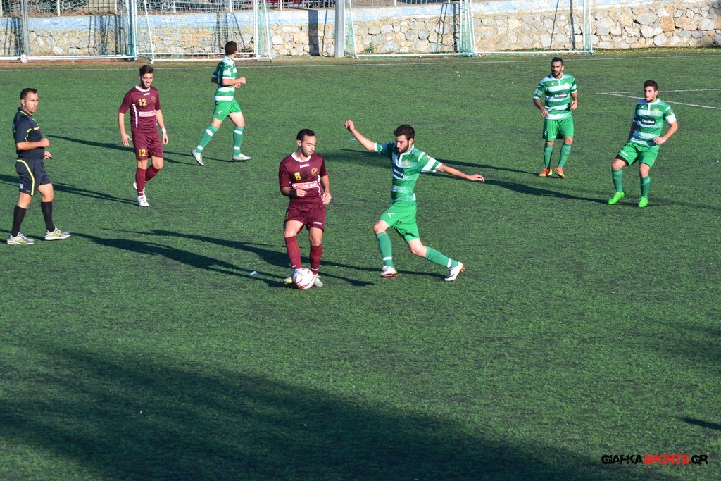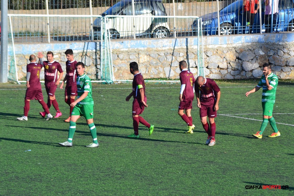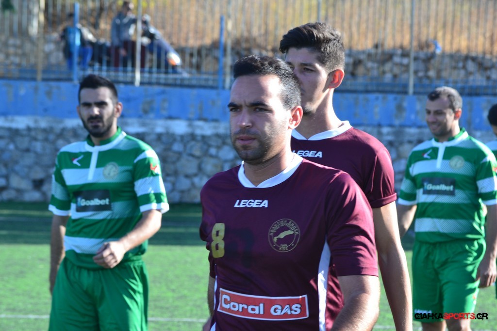 Οι φιλοξενούμενοι μπήκαν καλύτερα στον αγωνιστικό χώρο και προσπάθησαν κυρίως απ’ τα πλάγια, με την τριάδα των επιθετικών να αλλάζει συνεχώς θέσεις, να πατήσει την αντίπαλη περιοχή και αφού στο 15’ είχε δοκάρι με τον Δαμανάκη στο 20’ πήρε προβάδισμα στο σκορ όταν μετά από γύρισμα του Βασιλειάδη ο Στάμος κινήθηκε ωραία στην μικρή περιοχή και έκανε το 0-1 που ήταν και το αποτέλεσμα του πρώτου μέρους αφού στην συνέχεια το παιχνίδι δεν είχε ρυθμό και φάσεις μέχρι και το 45’.