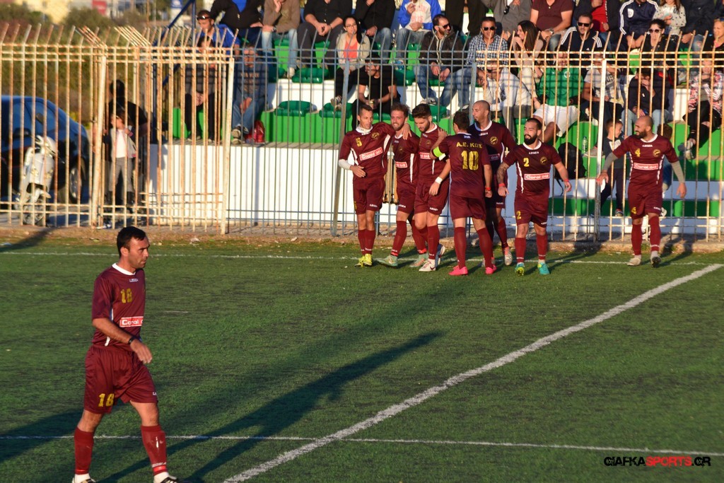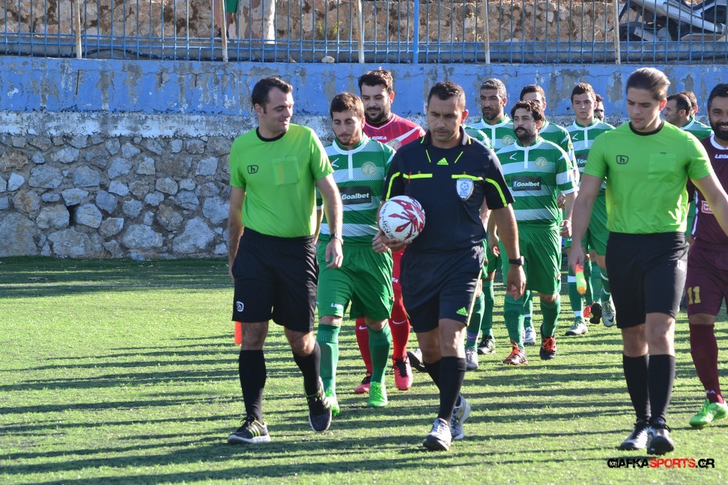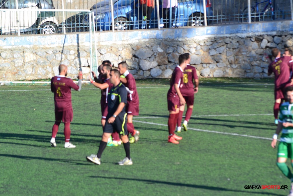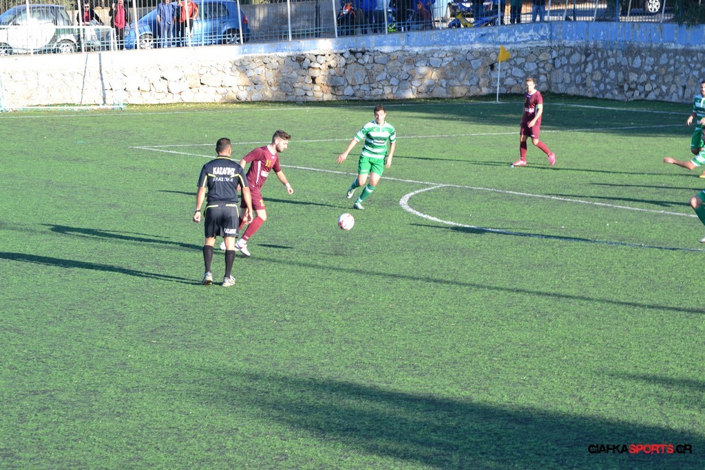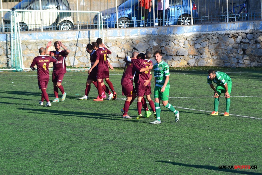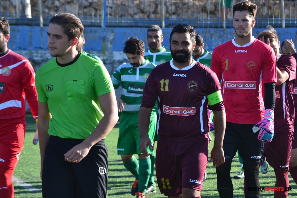 Οι φιλοξενούμενοι μπήκαν καλύτερα στον αγωνιστικό χώρο και προσπάθησαν κυρίως απ’ τα πλάγια, με την τριάδα των επιθετικών να αλλάζει συνεχώς θέσεις, να πατήσει την αντίπαλη περιοχή και αφού στο 15’ είχε δοκάρι με τον Δαμανάκη στο 20’ πήρε προβάδισμα στο σκορ όταν μετά από γύρισμα του Βασιλειάδη ο Στάμος κινήθηκε ωραία στην μικρή περιοχή και έκανε το 0-1 που ήταν και το αποτέλεσμα του πρώτου μέρους αφού στην συνέχεια το παιχνίδι δεν είχε ρυθμό και φάσεις μέχρι και το 45’.