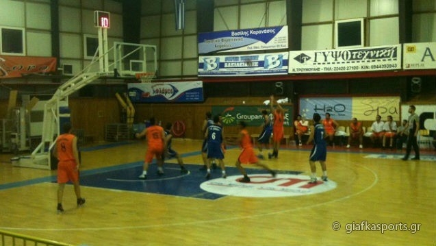 Ο Δημήτρης Τζομάκας έχοντας σε πολύ καλή μέρα τους Τρύπα και Καλαμπαλή που πέτυχαν αντίστοιχα 26 και 21 πόντους αντίστοιχα, είδε την ομάδα να ανοίγει την διαφορά απ’ το πρώτο δεκάλεπτο ενώ το ημίχρονο έληξε 45-28.