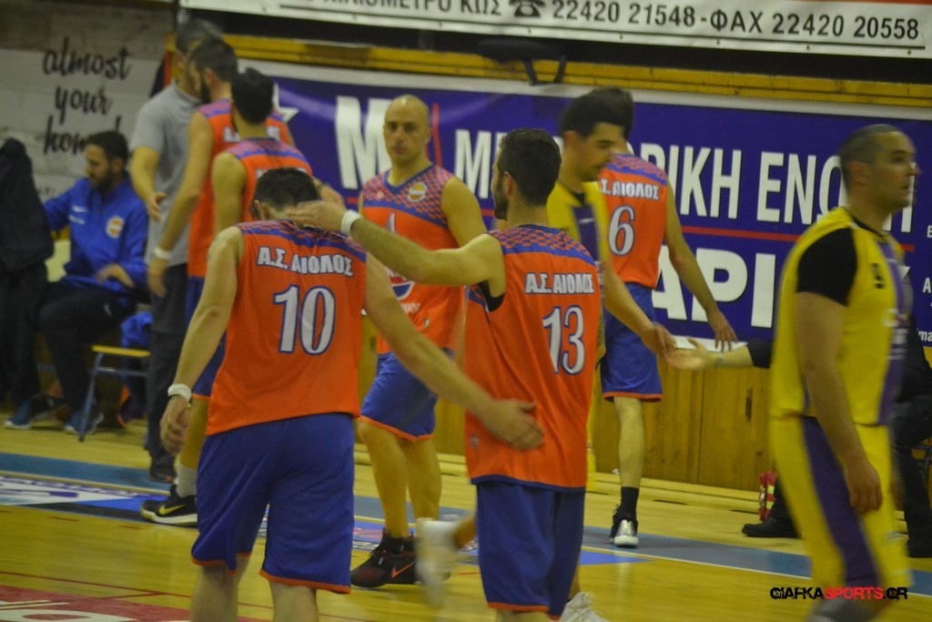 Τη νίκη με 63-58 για την εξ αναβολής αναμέτρηση της 7ης αγωνιστική του Ομίλου νήσων πανηγύρισε ο Αίολος και πλέον περιμένει τους αγώνες για τα πλέι οφ απέναντι στον Ηρακλή 2000.