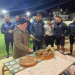Την ευκαιρία να κόψουν την πρωτοχρονιάτικη πίτα τους είχαν οι ποδοσφαιριστές και οι άνθρωποι της διοίκησης της ομάδας σε μια απ’ τις προπονήσεις του συλλόγου.