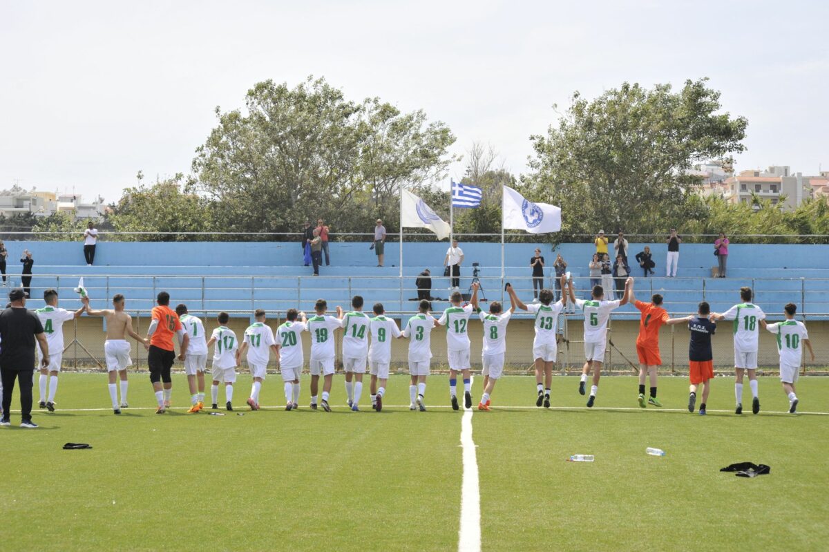 Πραγματοποιώντας εξαιρετική εμφάνιση στη μεγαλύτερη διάρκεια του παιχνιδιού, η Μικτή Κ-14 της Δωδεκανήσου επικράτησε με το εμφατικό 6-3 του Ρεθύμνου στο Ενωσιακό γήπεδο Ρόδου και πανηγύρισε την πρόκριση στην προημιτελική φάση του Πανελλήνιου Πρωταθλήματος Προεπιλογής Εθνικών Ομάδων, όπου θα αντιμετωπίσει εντός έδρας την Ε.Π.Σ. Χαλκιδικής. Νικολάου (3), Κρητικός (2) και Σώνο οι σκόρερ για την ομάδα του Γιώργου Τριχιά, ενώ Χουσεΐν και Σαρηγιάννης (αυτ.) σημείωσαν τα γκολ για τους φιλοξενούμενους.