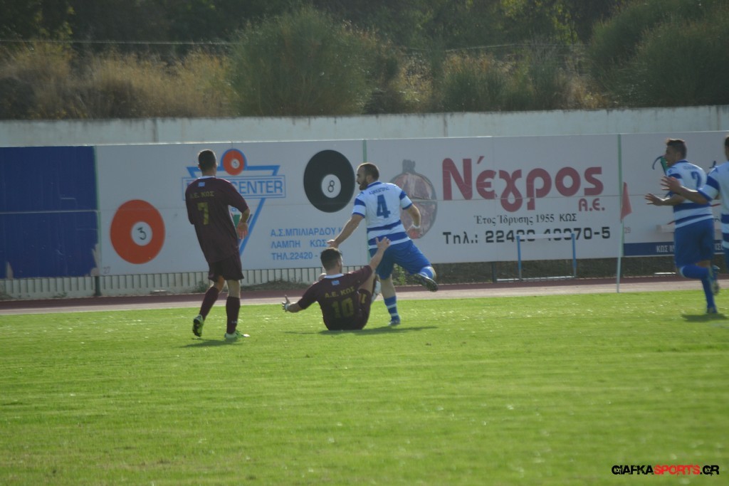 Όπως ξεκίνησε το πρώτο ξεκίνησε και το δεύτερο μέρος για την Α.Ε Κω αφού ο Βαγγέλης Παπανικολάου και πάλι ήταν αυτός που στο 55’ πέτυχε το 3-0 και ουσιαστικά κλείδωσε τη νίκη για την ομάδα του.