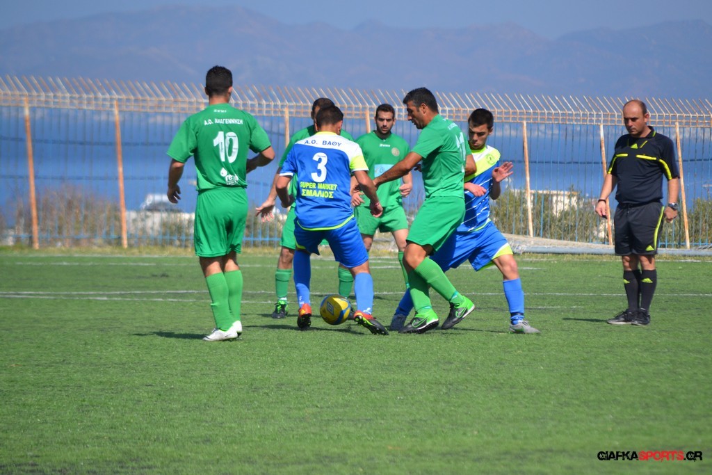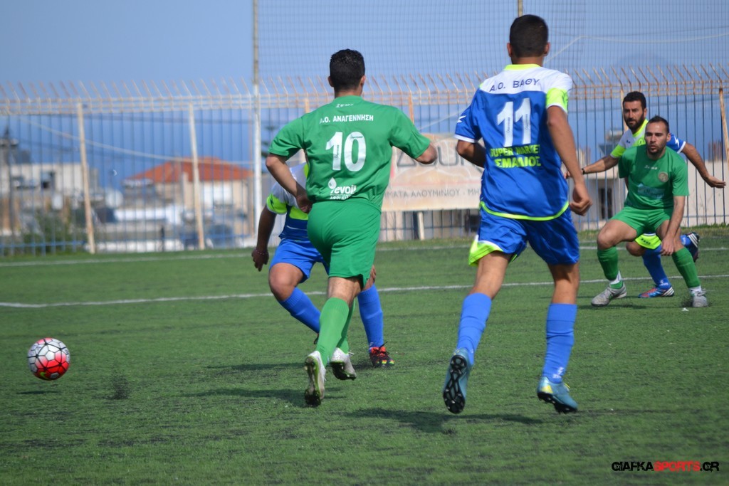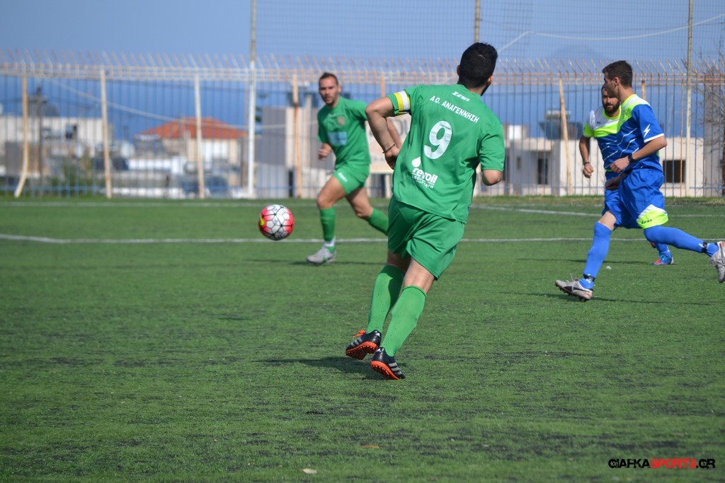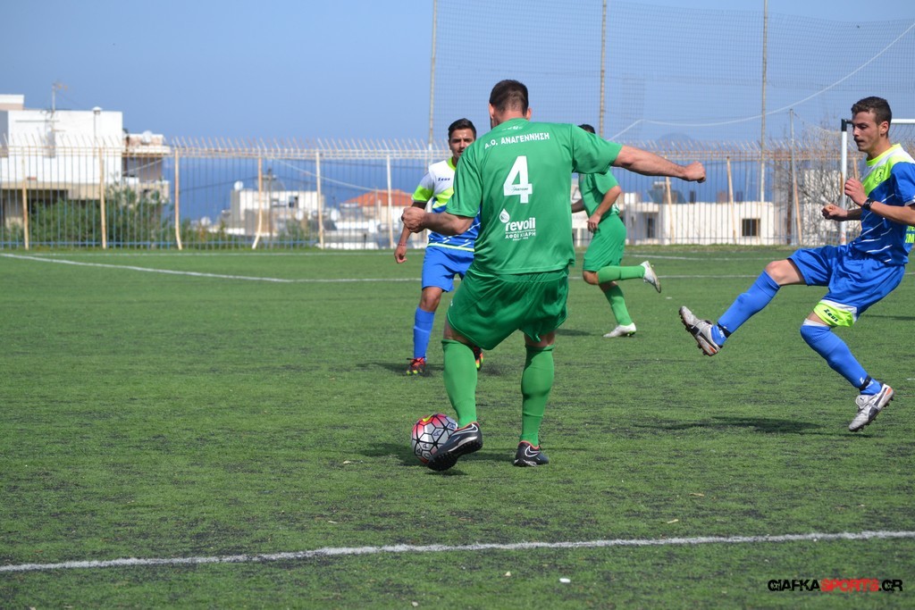 Παίζοντας ωραίο ποδόσφαιρο στην μεγαλύτερη διάρκεια του αγώνα η Αναγέννηση Ασφενδιού επικράτησε με 5-1 του Α.Ο Βαθύ για την εξ αναβολής αναμέτρησης της 12ης αγωνιστικής για την Β’ κατηγορία του Ομίλου νήσων. Φυτάς 19’, Τράκας 27’ και ο Γιώργος Φούκης με χατ τρικ (40’, 52’, 90’) τα γκολ των «πρασίνων» ενώ για το Βαθύ το γκολ της τιμής πέτυχε ο Αλαχούζος στο 58’.