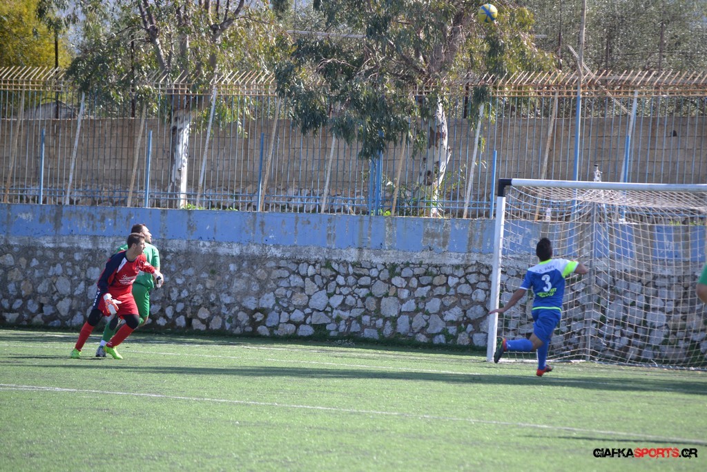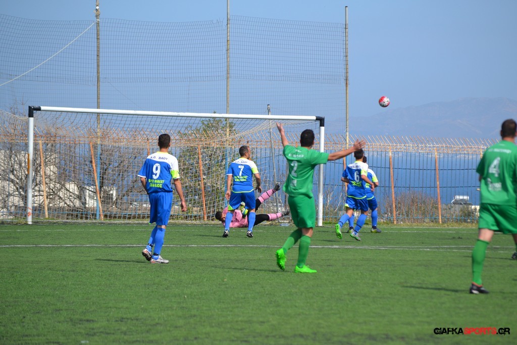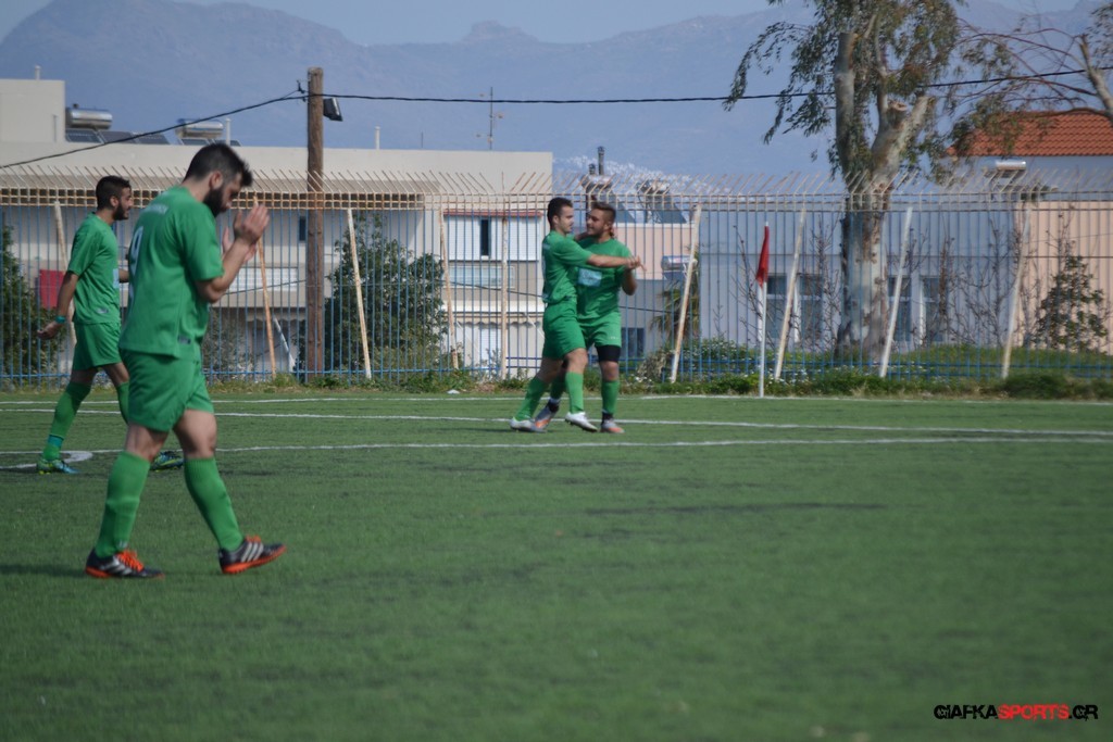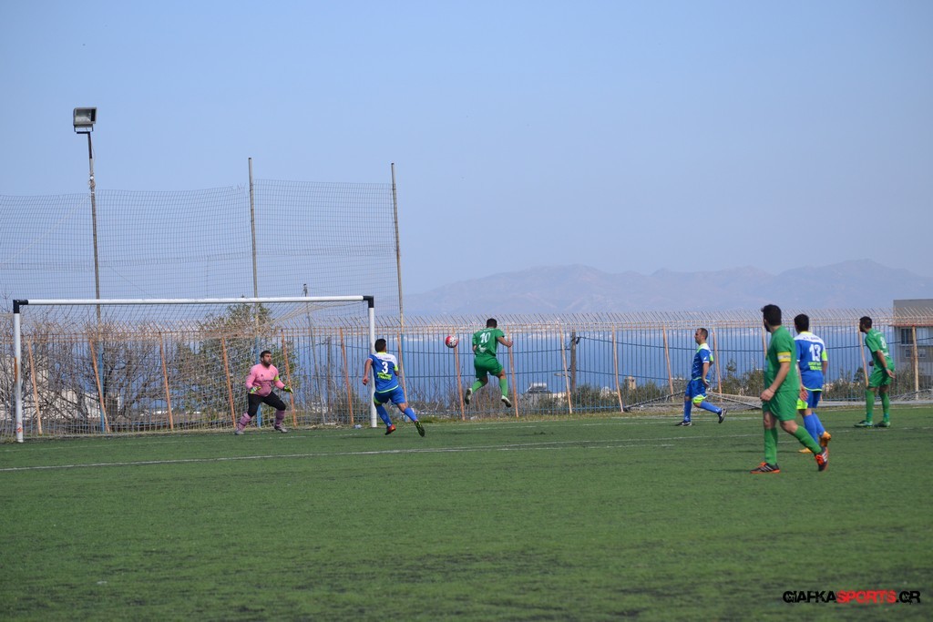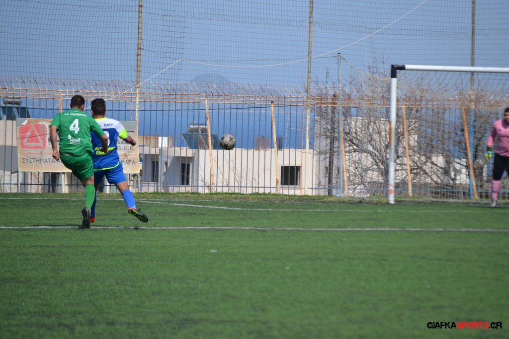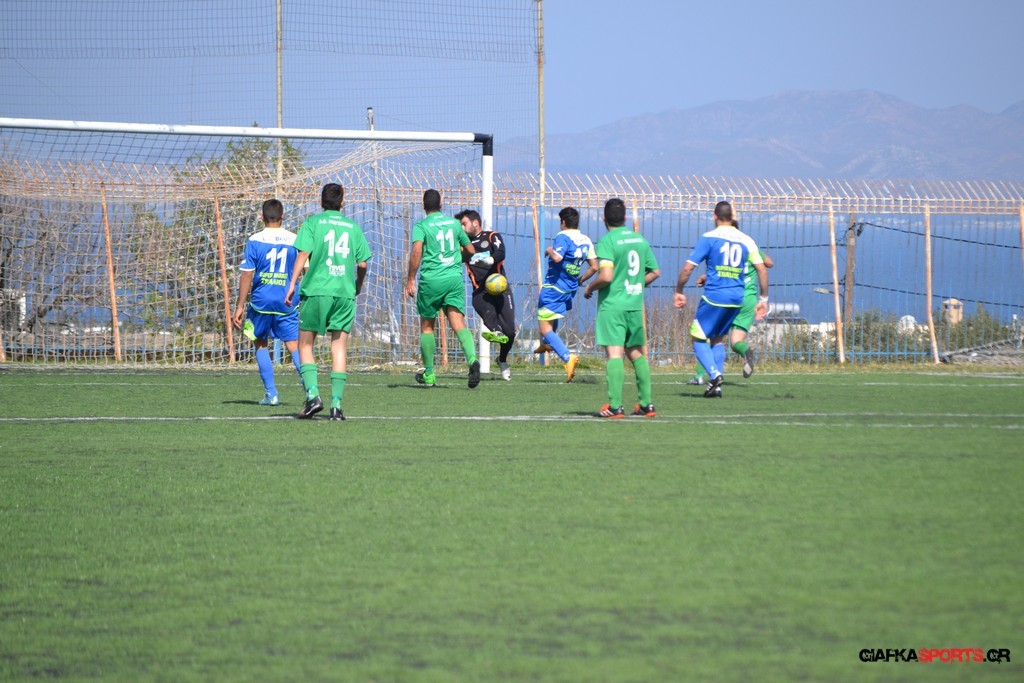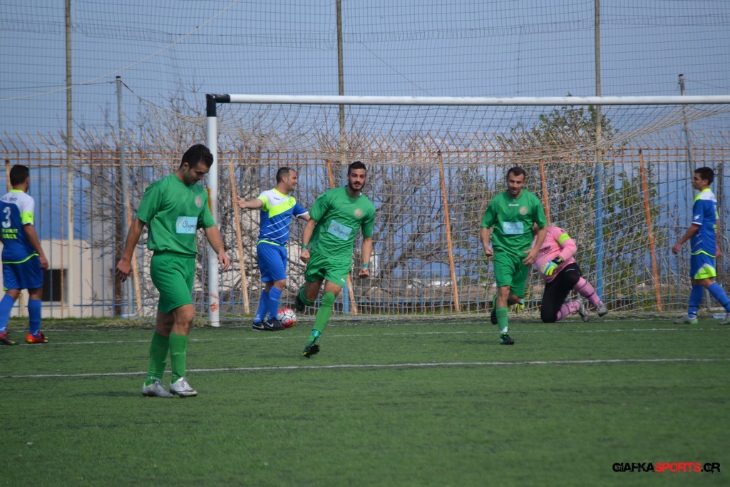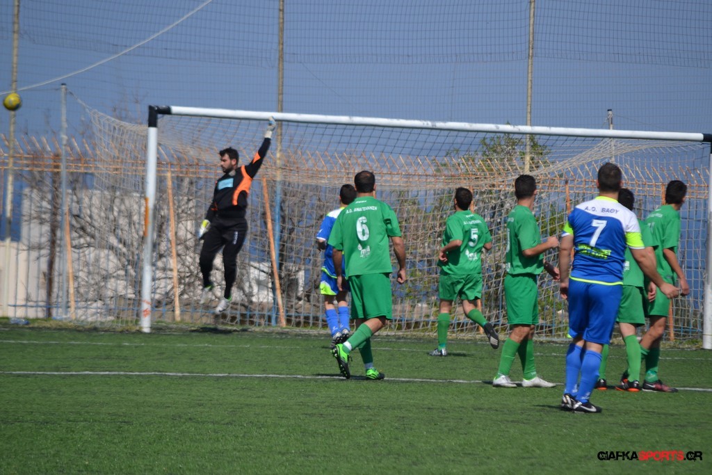 40′ ΓΚΟΛ!! Σέντρα του Ματθαίου από τα αριστερά καρφωτή κεφαλιά του Φούκη Γ., η μπάλα κατέληξε στην αριστερή γωνία του Αμοργίνου για το 3-0.