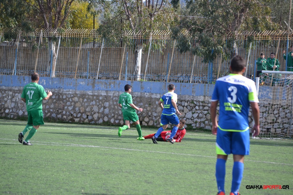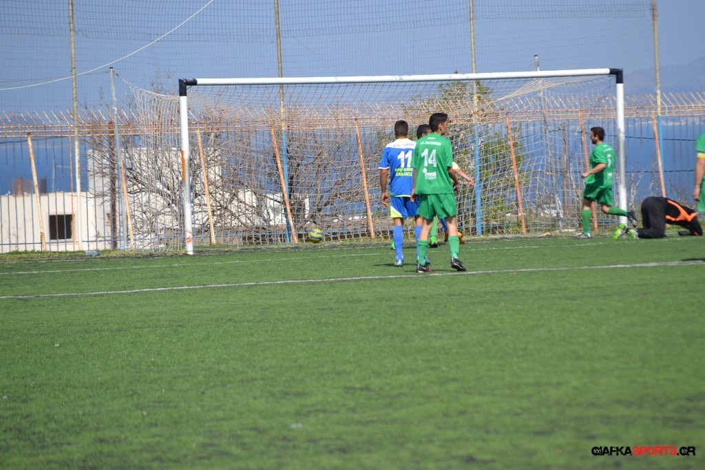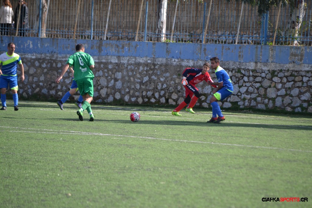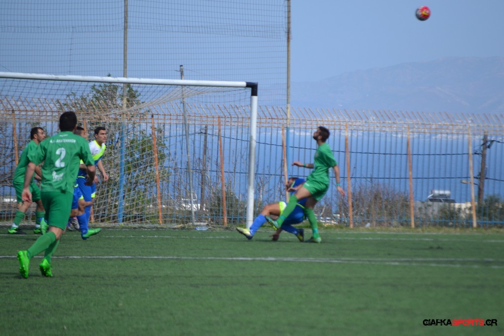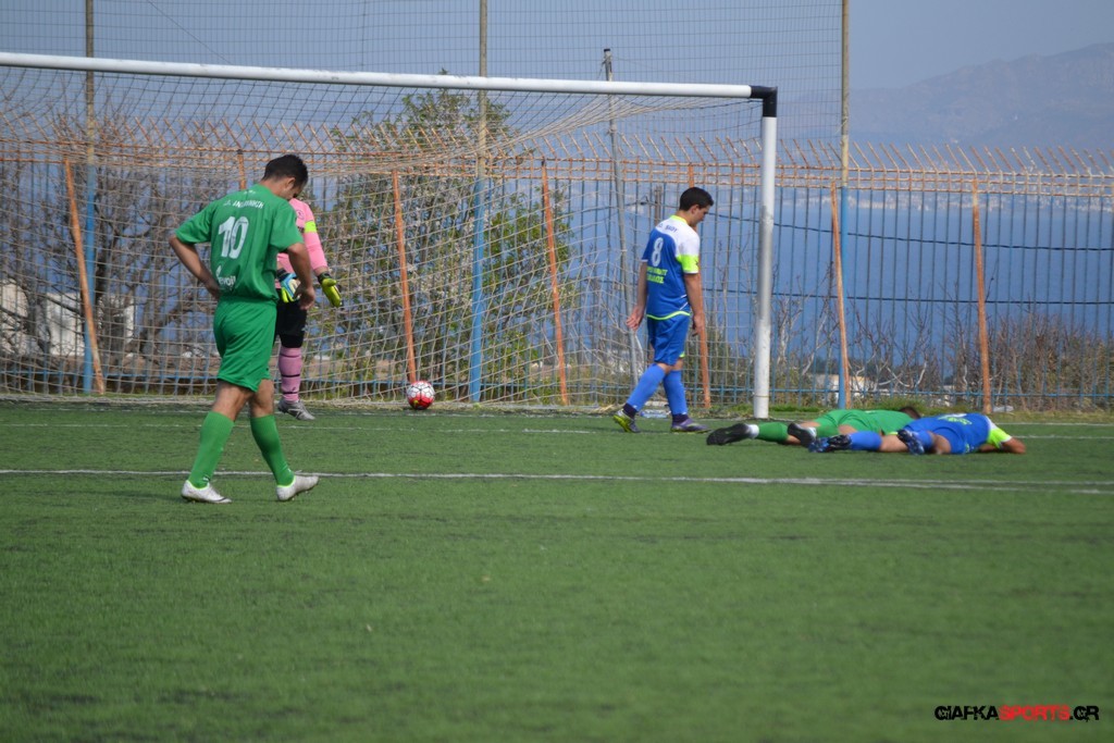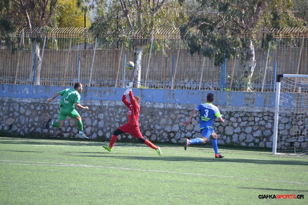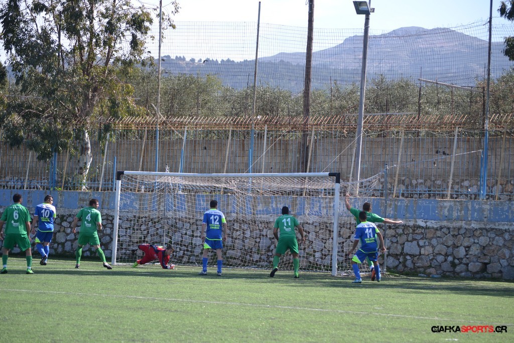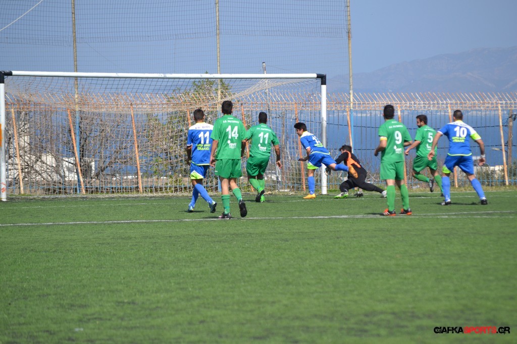 40′ ΓΚΟΛ!! Σέντρα του Ματθαίου από τα αριστερά καρφωτή κεφαλιά του Φούκη Γ., η μπάλα κατέληξε στην αριστερή γωνία του Αμοργίνου για το 3-0.