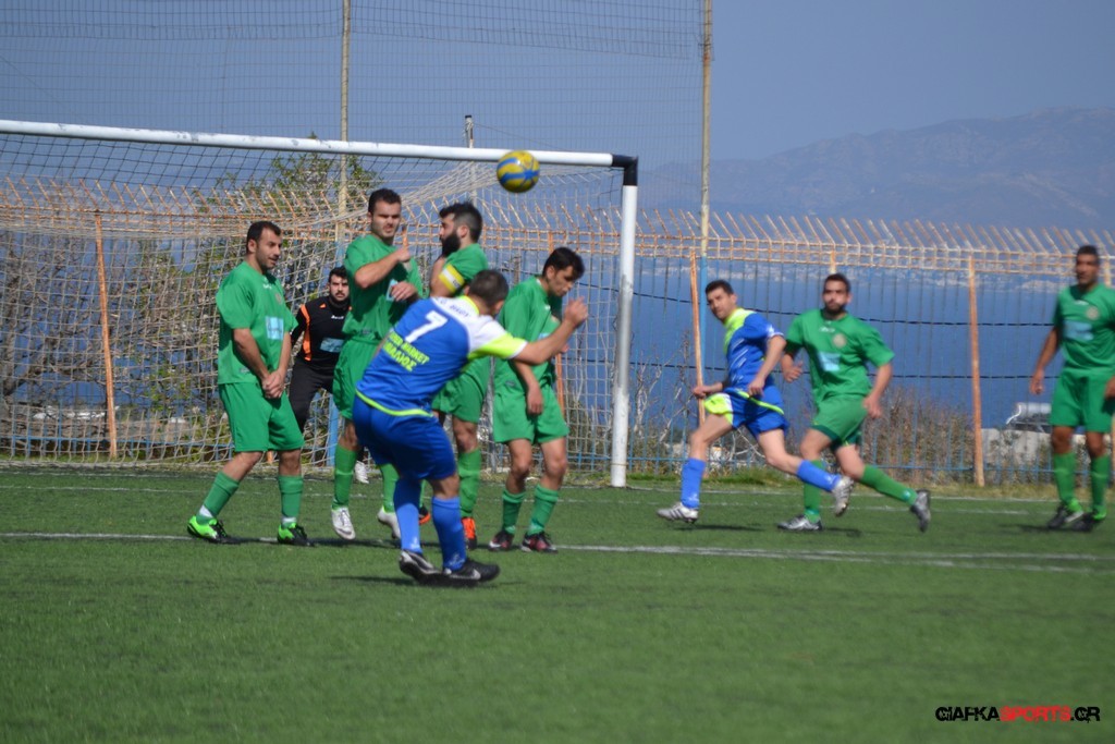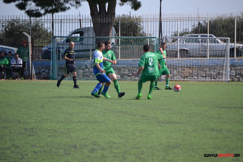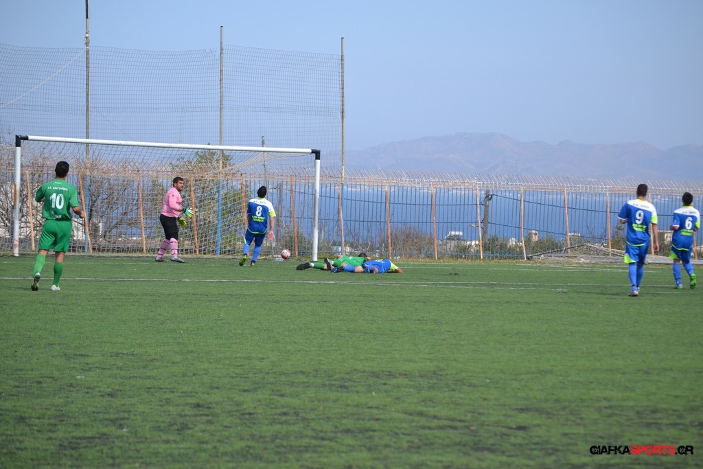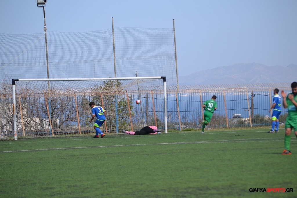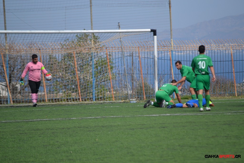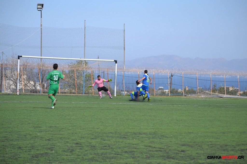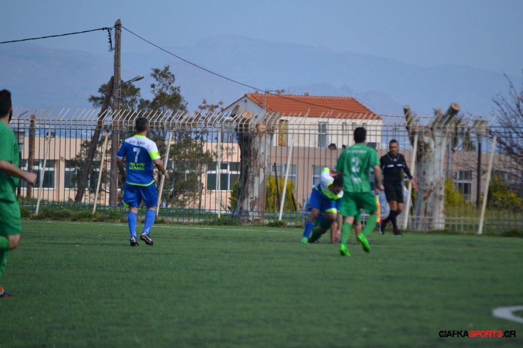 40′ ΓΚΟΛ!! Σέντρα του Ματθαίου από τα αριστερά καρφωτή κεφαλιά του Φούκη Γ., η μπάλα κατέληξε στην αριστερή γωνία του Αμοργίνου για το 3-0.