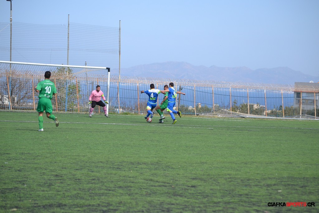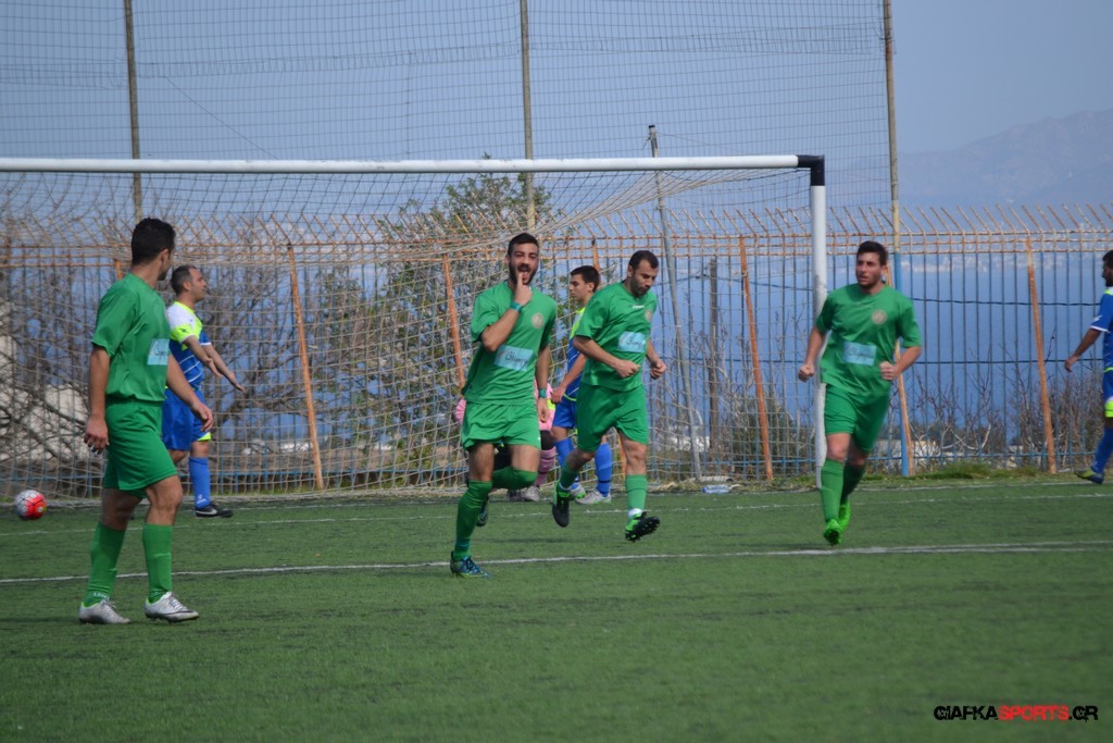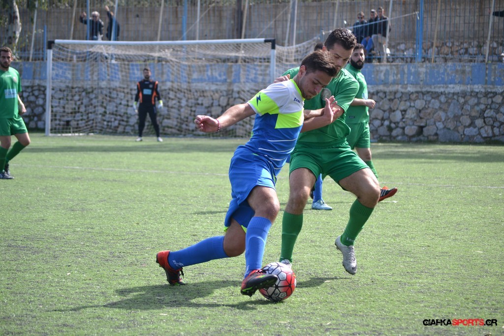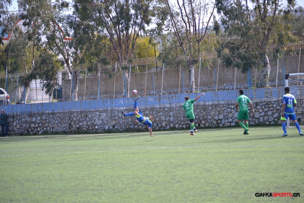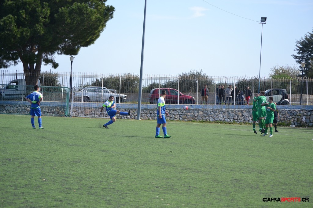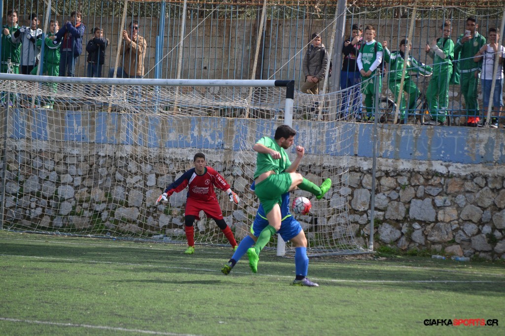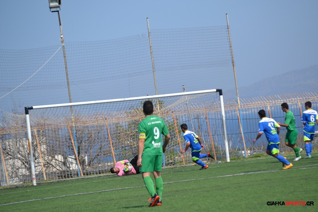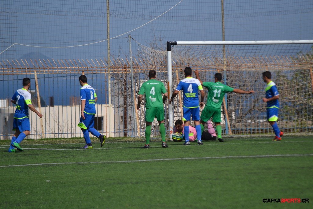 40′ ΓΚΟΛ!! Σέντρα του Ματθαίου από τα αριστερά καρφωτή κεφαλιά του Φούκη Γ., η μπάλα κατέληξε στην αριστερή γωνία του Αμοργίνου για το 3-0.