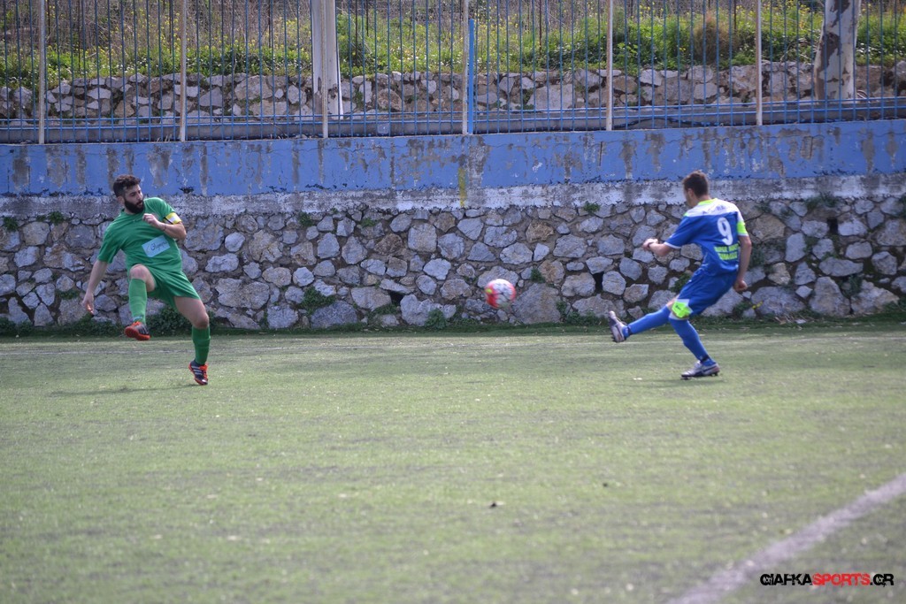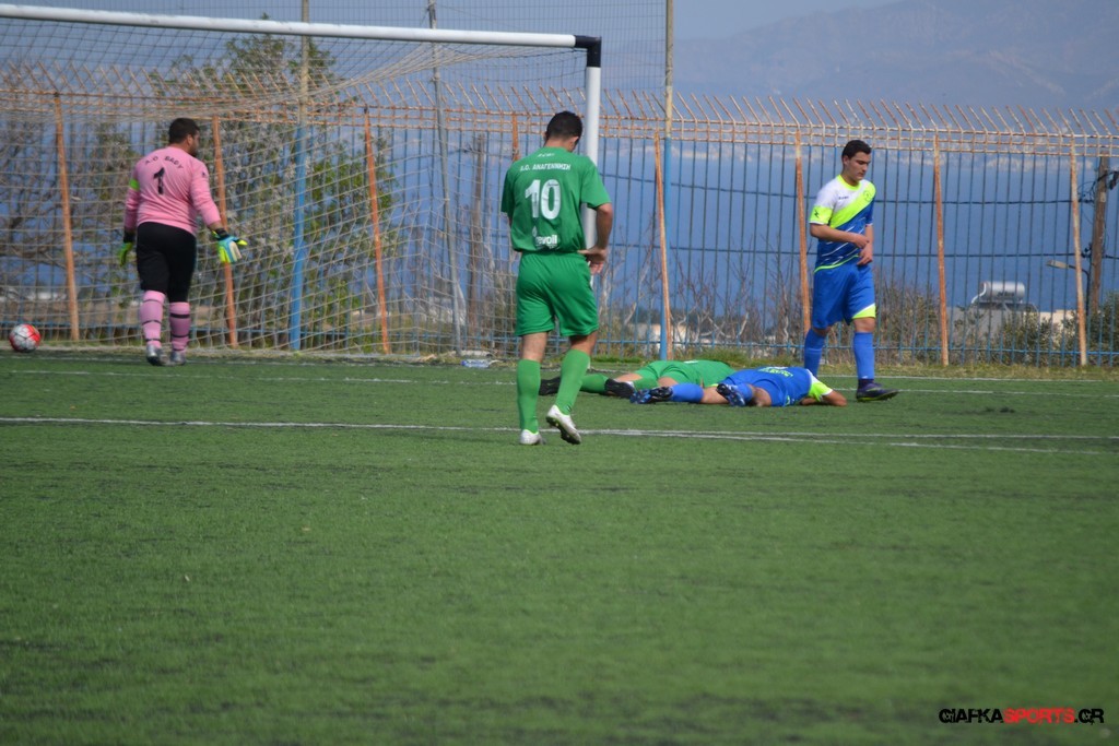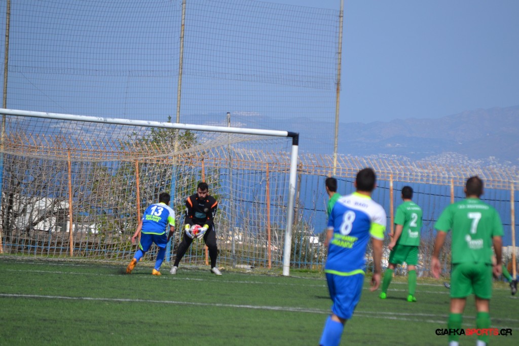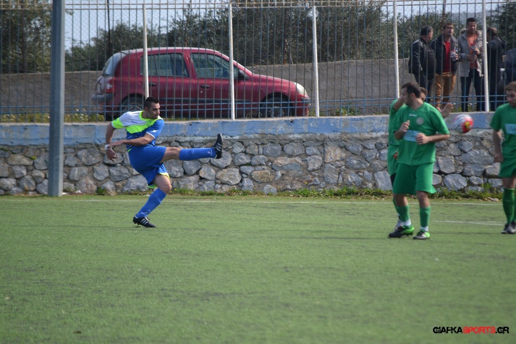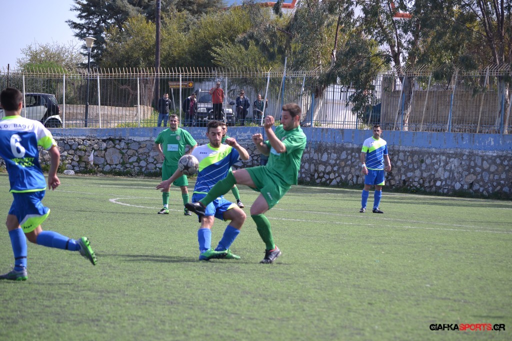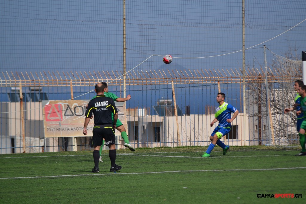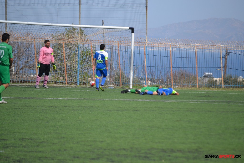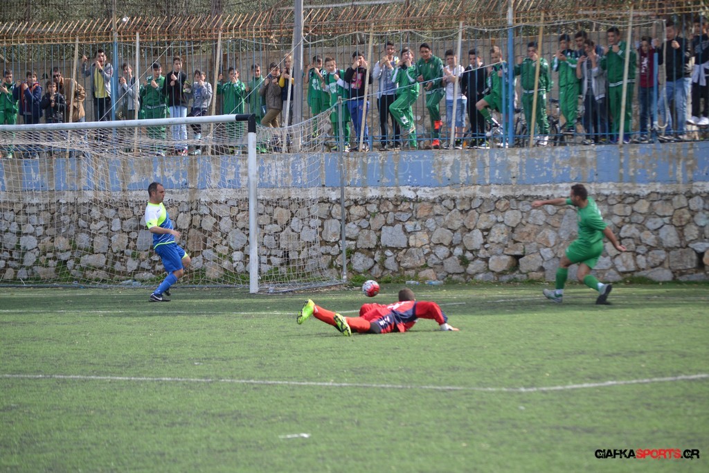40′ ΓΚΟΛ!! Σέντρα του Ματθαίου από τα αριστερά καρφωτή κεφαλιά του Φούκη Γ., η μπάλα κατέληξε στην αριστερή γωνία του Αμοργίνου για το 3-0.
