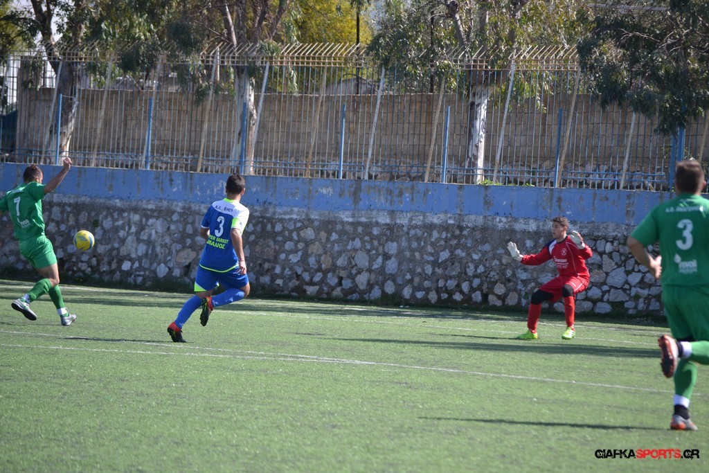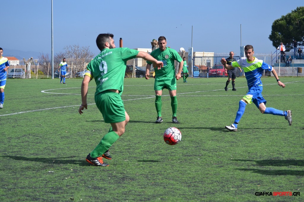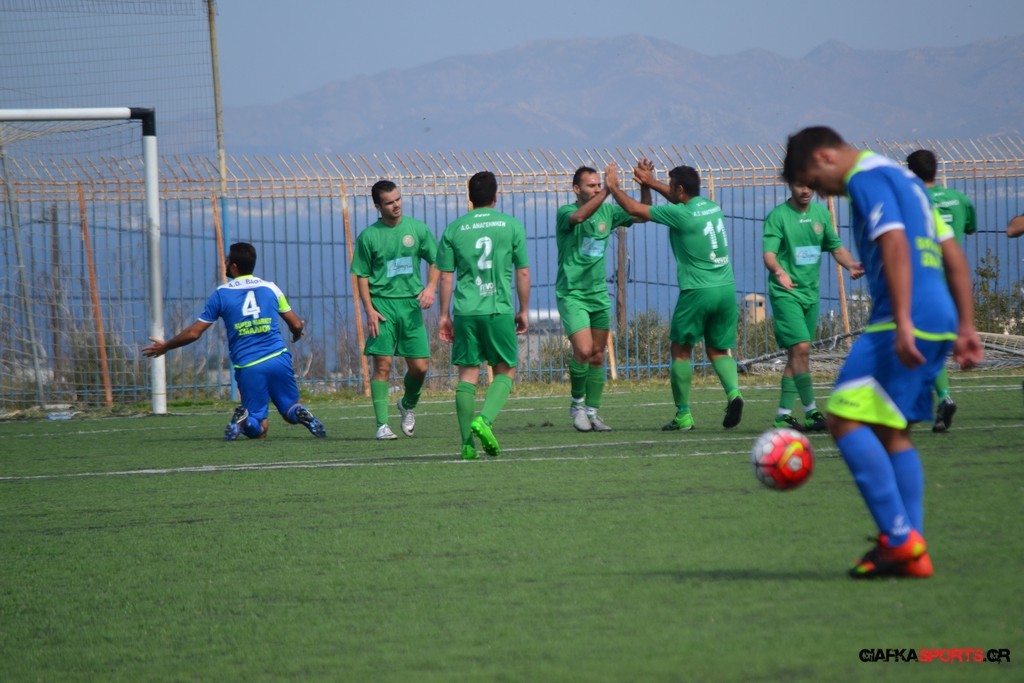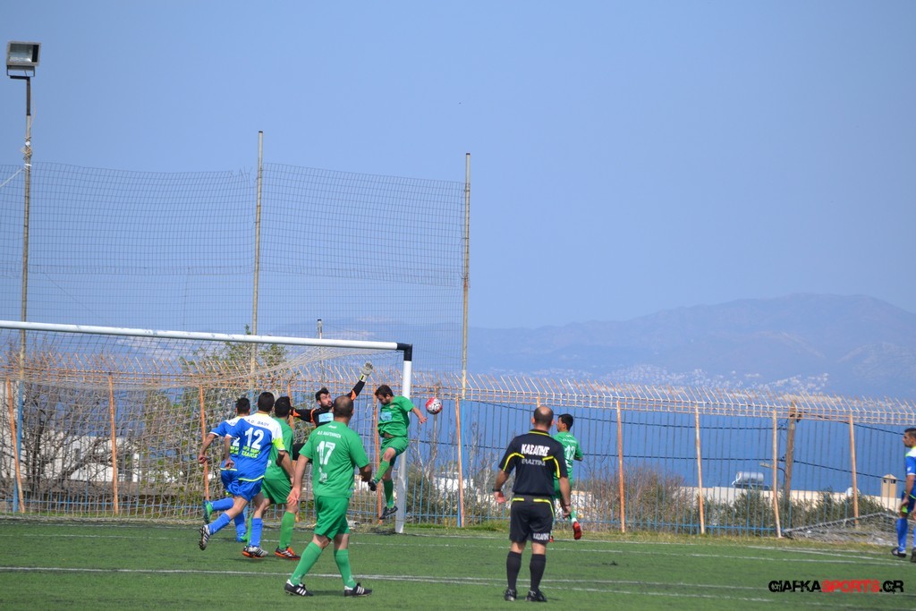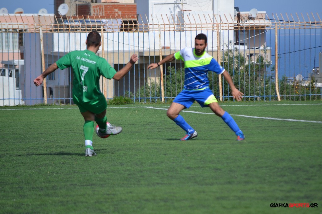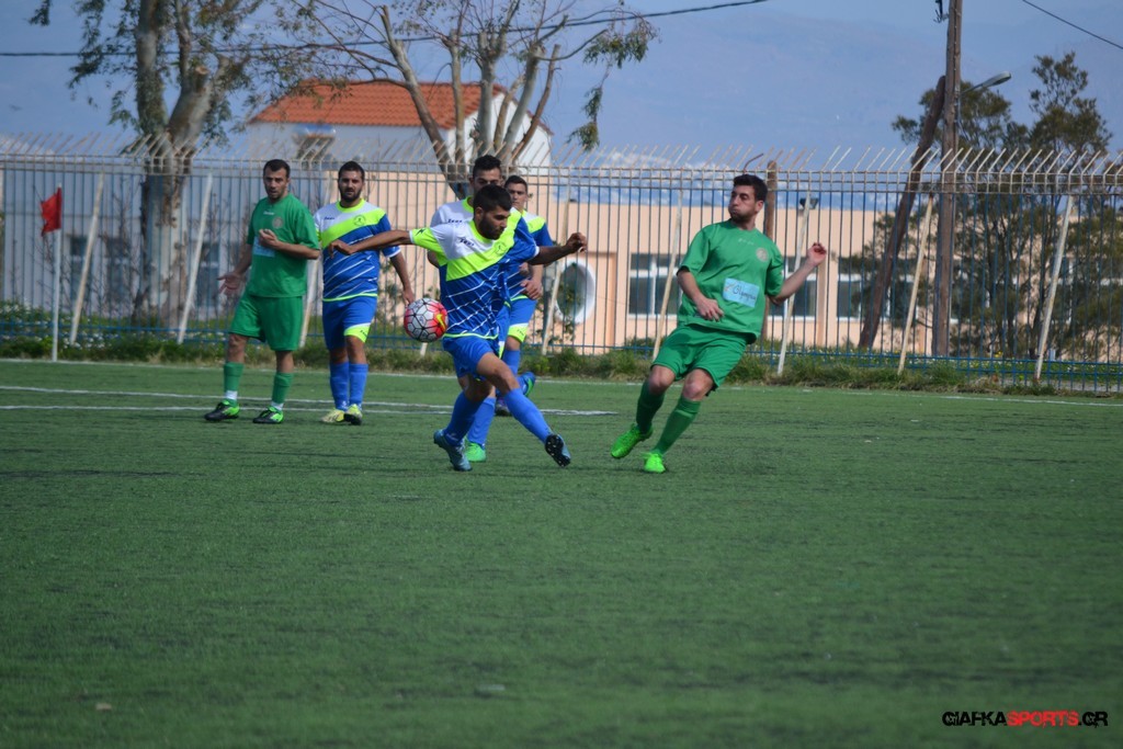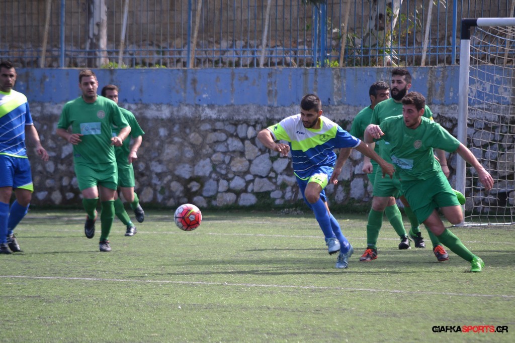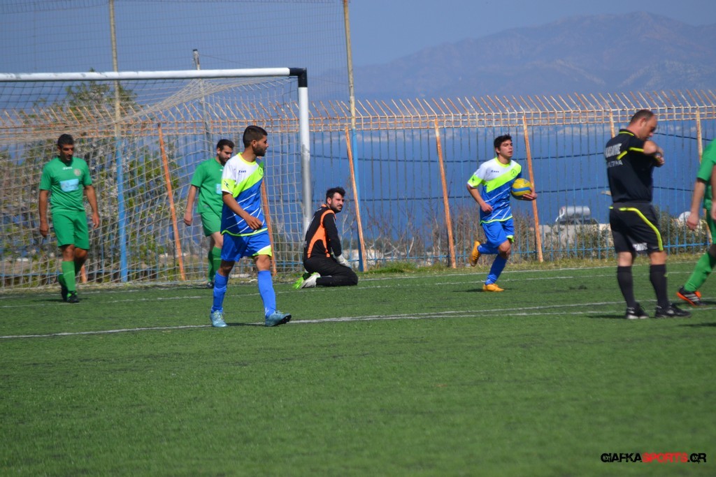 40′ ΓΚΟΛ!! Σέντρα του Ματθαίου από τα αριστερά καρφωτή κεφαλιά του Φούκη Γ., η μπάλα κατέληξε στην αριστερή γωνία του Αμοργίνου για το 3-0.
