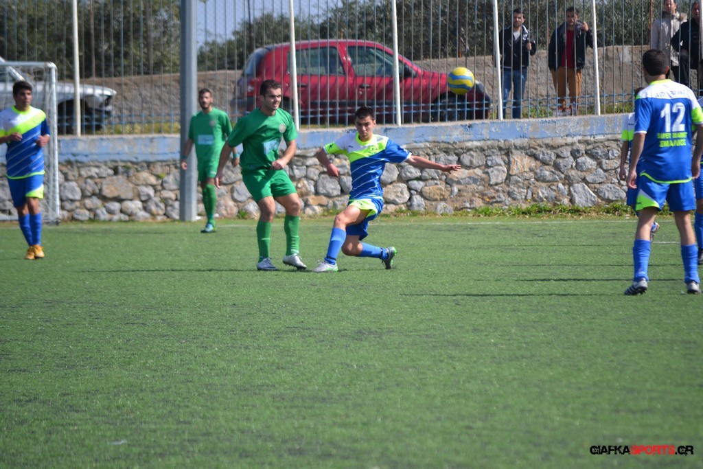 35′ Ο Φυτάς κατέβασε με το κεφάλι στον Φούκη Γ., αυτός αφού πέρασε τον προσωπικό του αντίπαλο έκανε το πλασέ με τον Αμοργίνο να μπλοκάρει σταθερά.