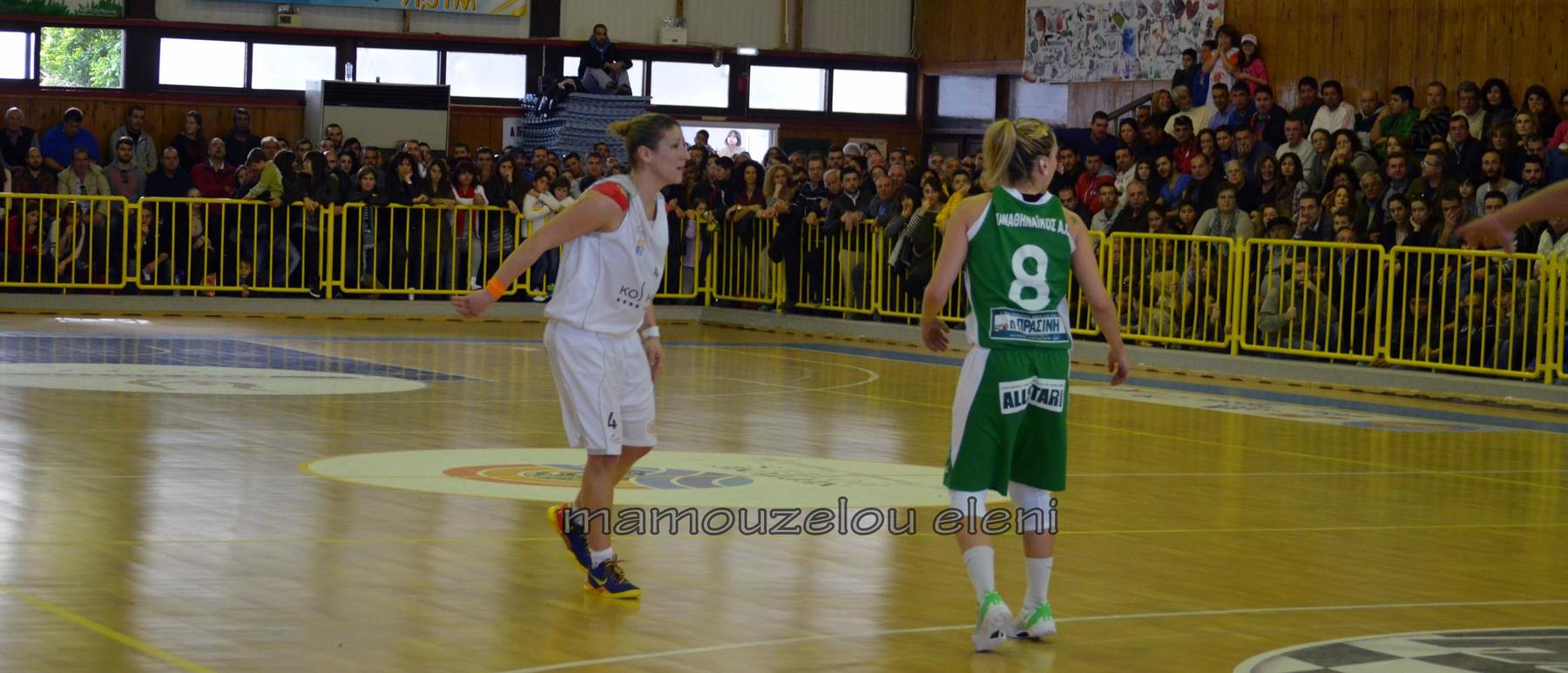 Ο Παναθηναικός ήταν ανώτερο στο πρώτο ημίχρονο και κατάφερνε είτε με την Γέμελος είτε με την εξαιρετική Ντέλβα η οποία πέτυχε 29 πόντους να πάρει ένα προβάδισμα στο σκορ 6-14 στο πρώτο δεκάλεπτο, και 24-31 στο ημίχρονο με την ομάδα του Μιχάλη Καπλανίδη πάντως να έχει κάποια μικρά ξεσπάσματα αλλά να είναι αρκετά άστοχη.
